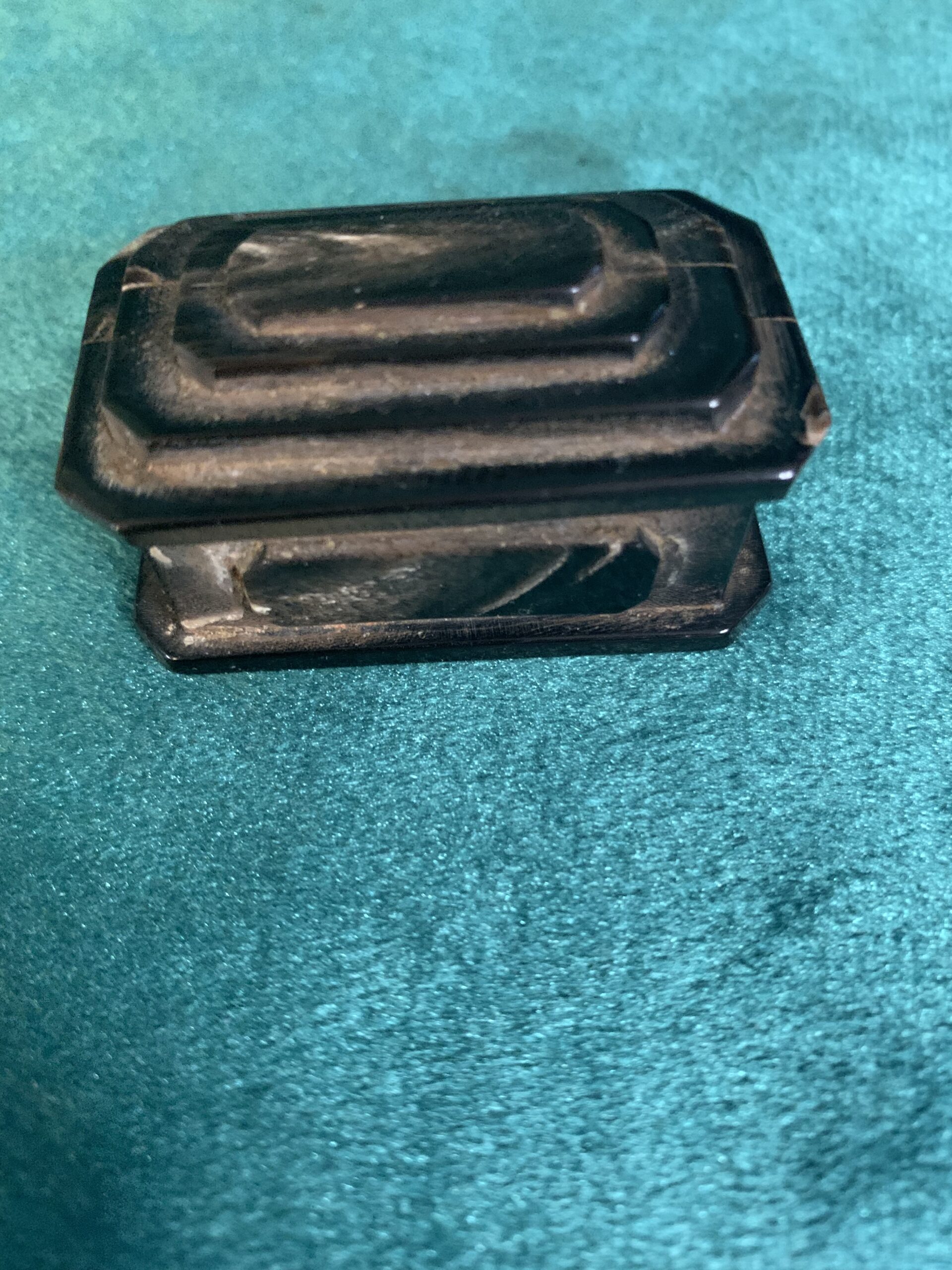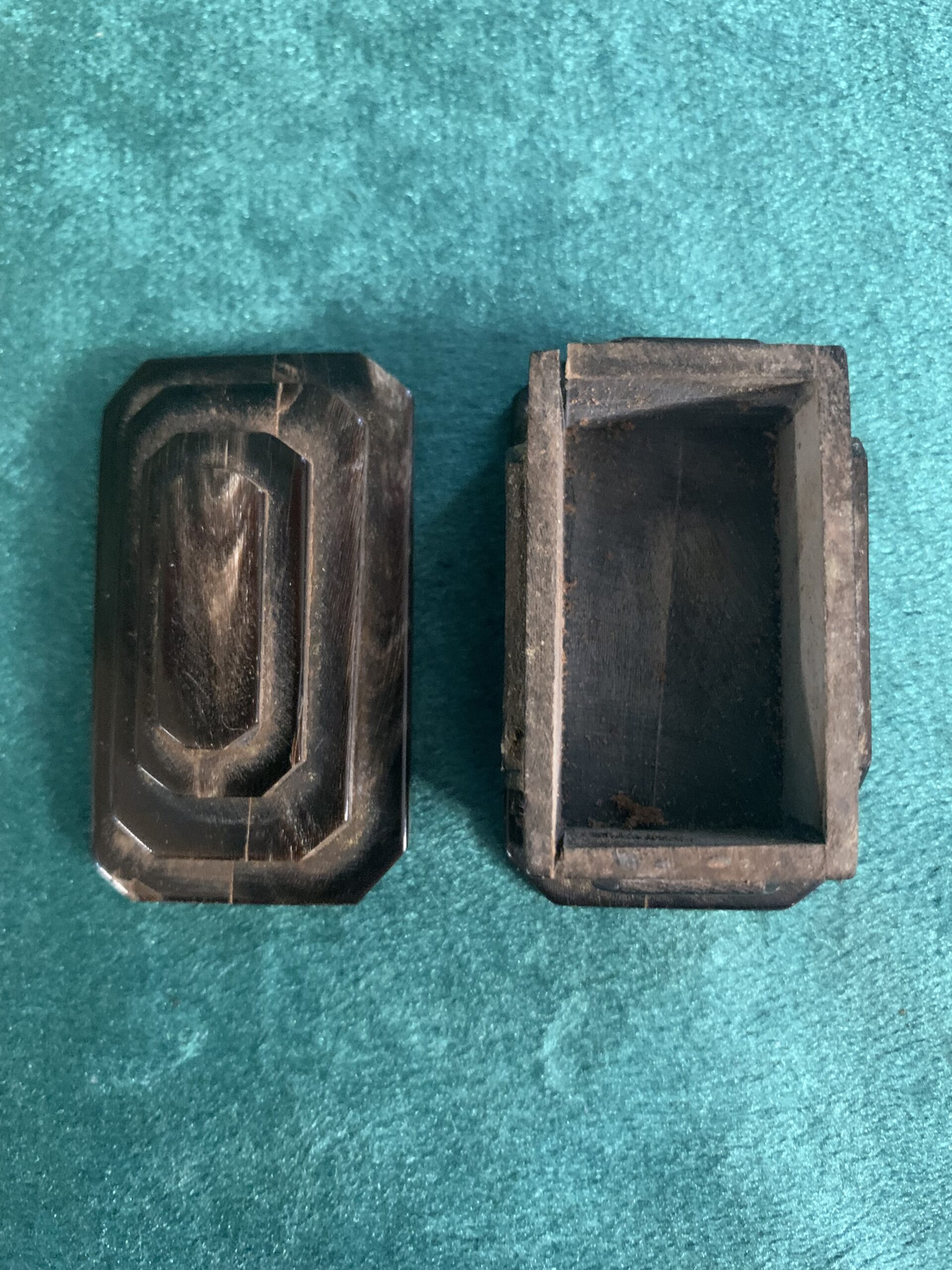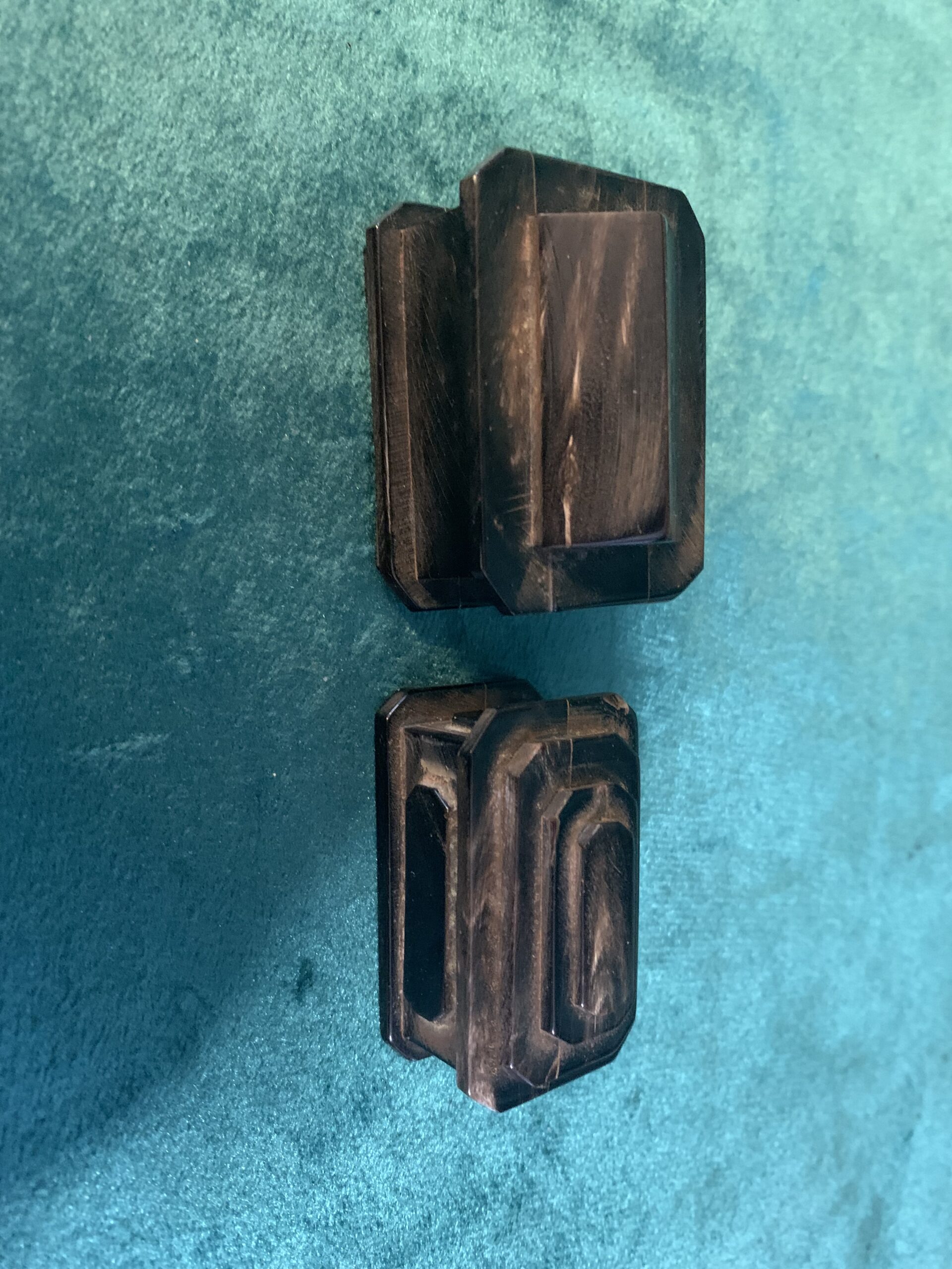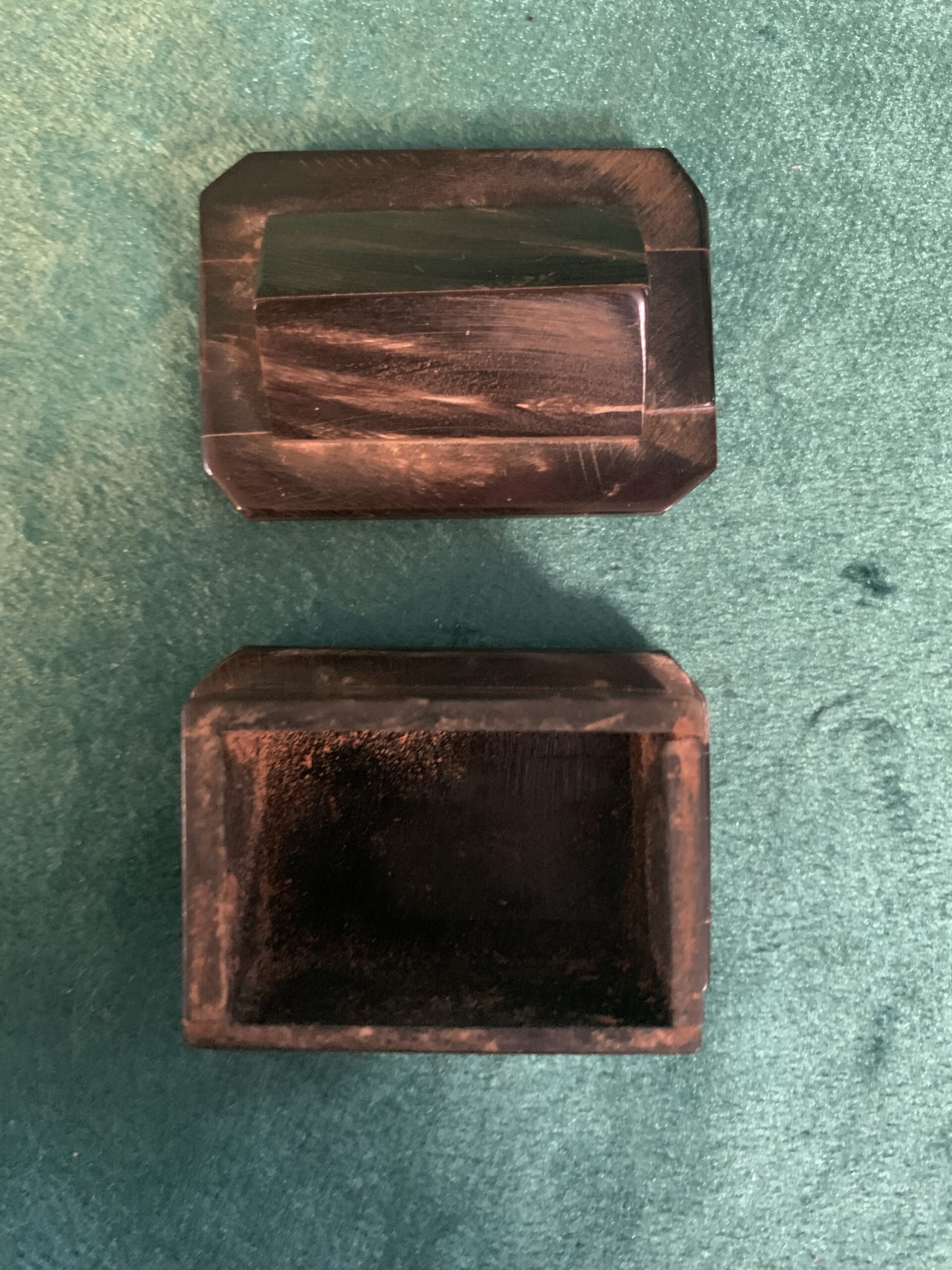 PAREJA DE ALHAJEROS EN MADERA DE EBANO DE GABÓN, pareja de alhajeros, de forma rectangular y tapa piramidal, tallados a mano posiblemente en el Congo, posiblemente años 60.