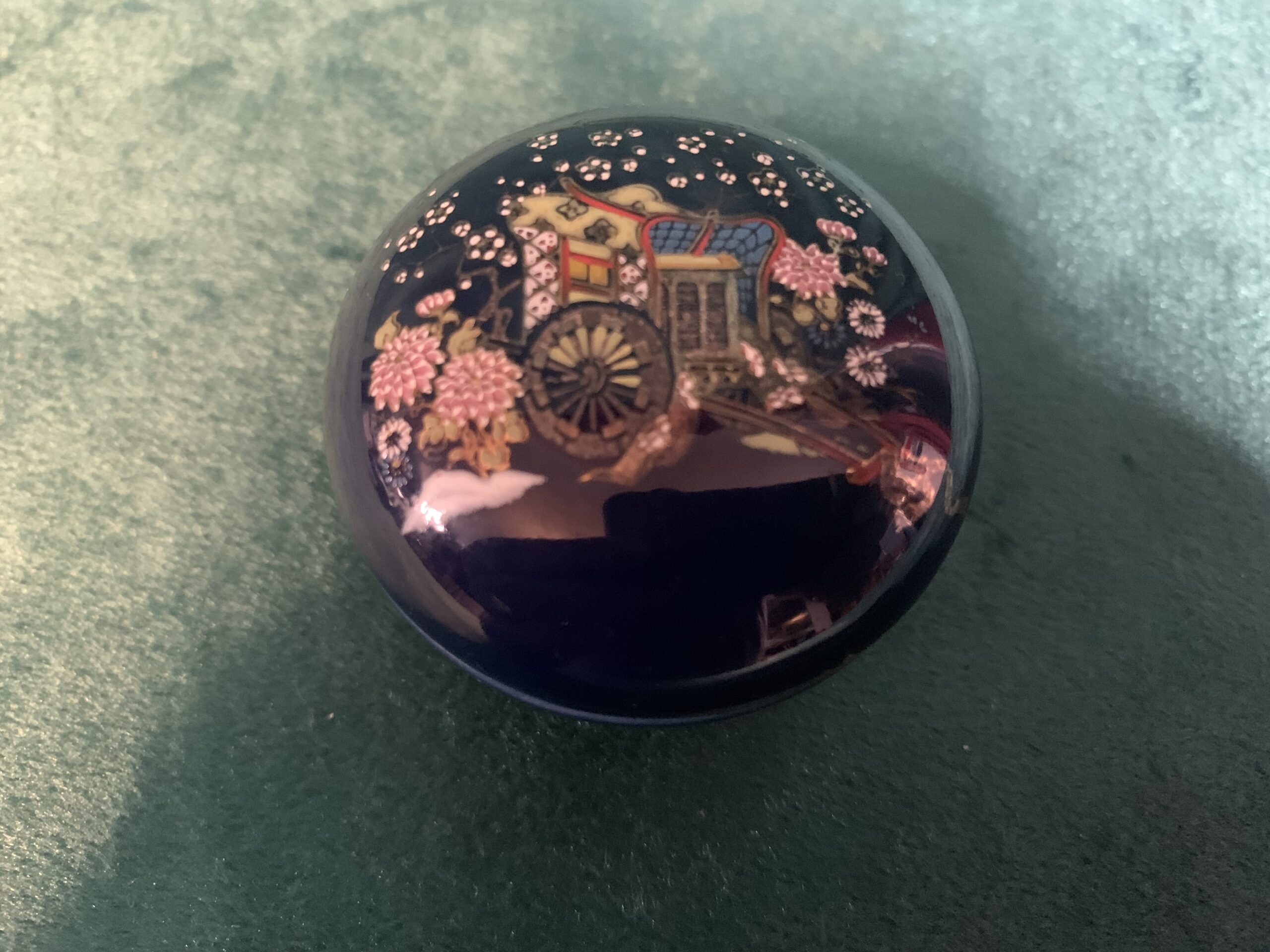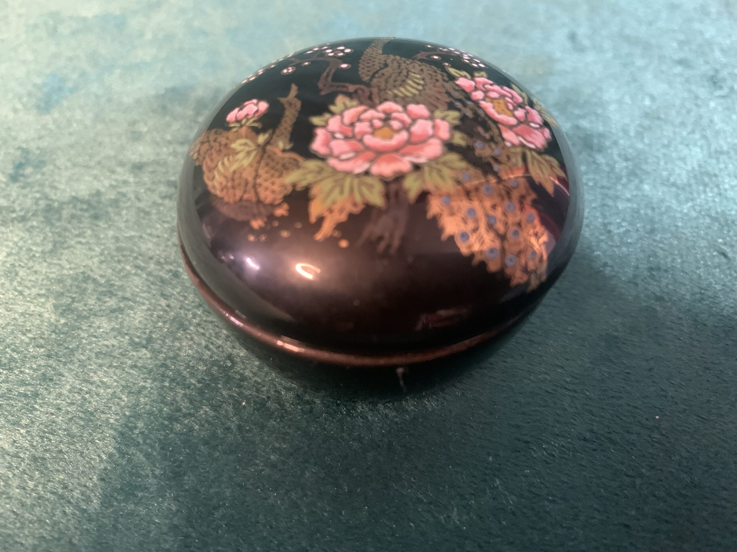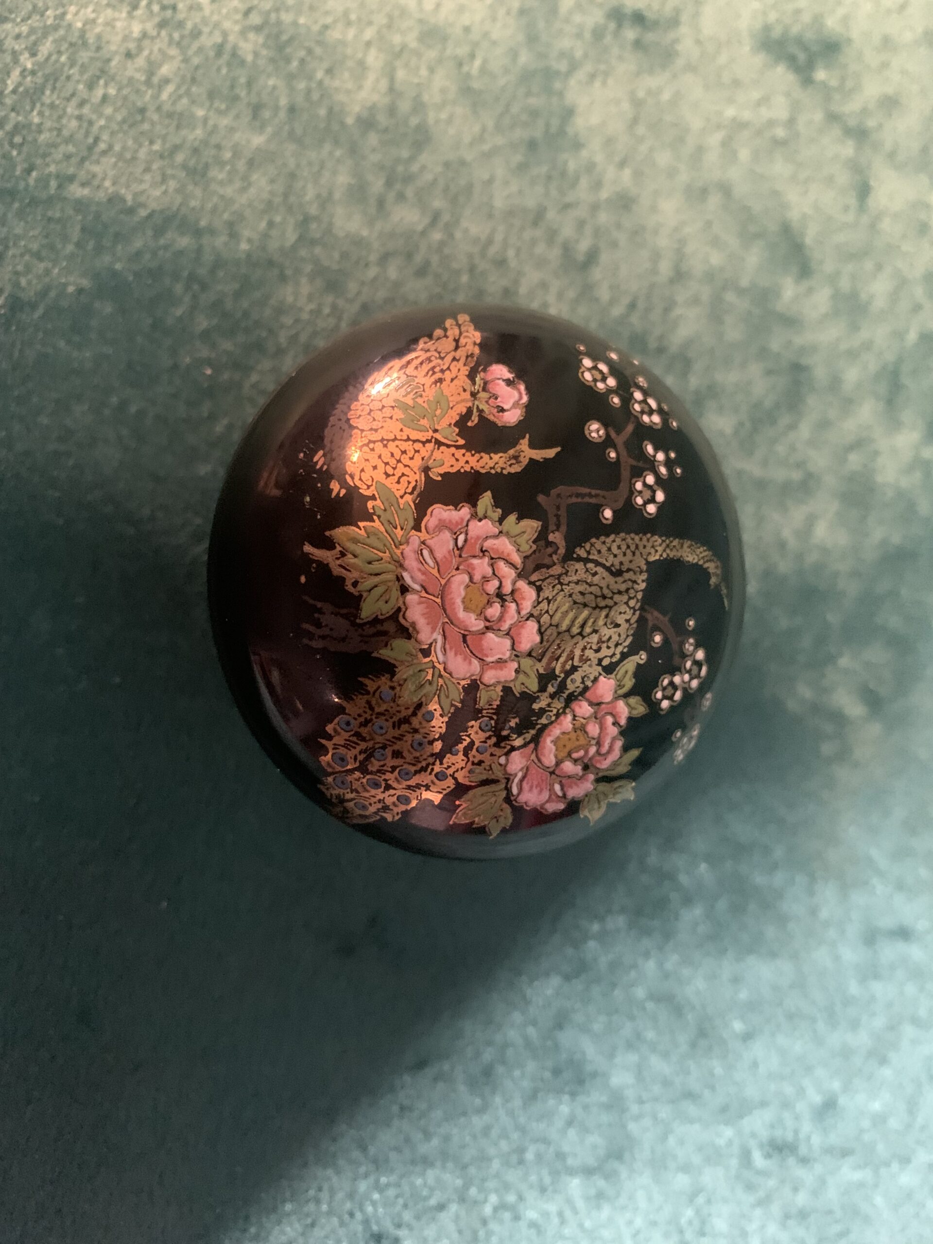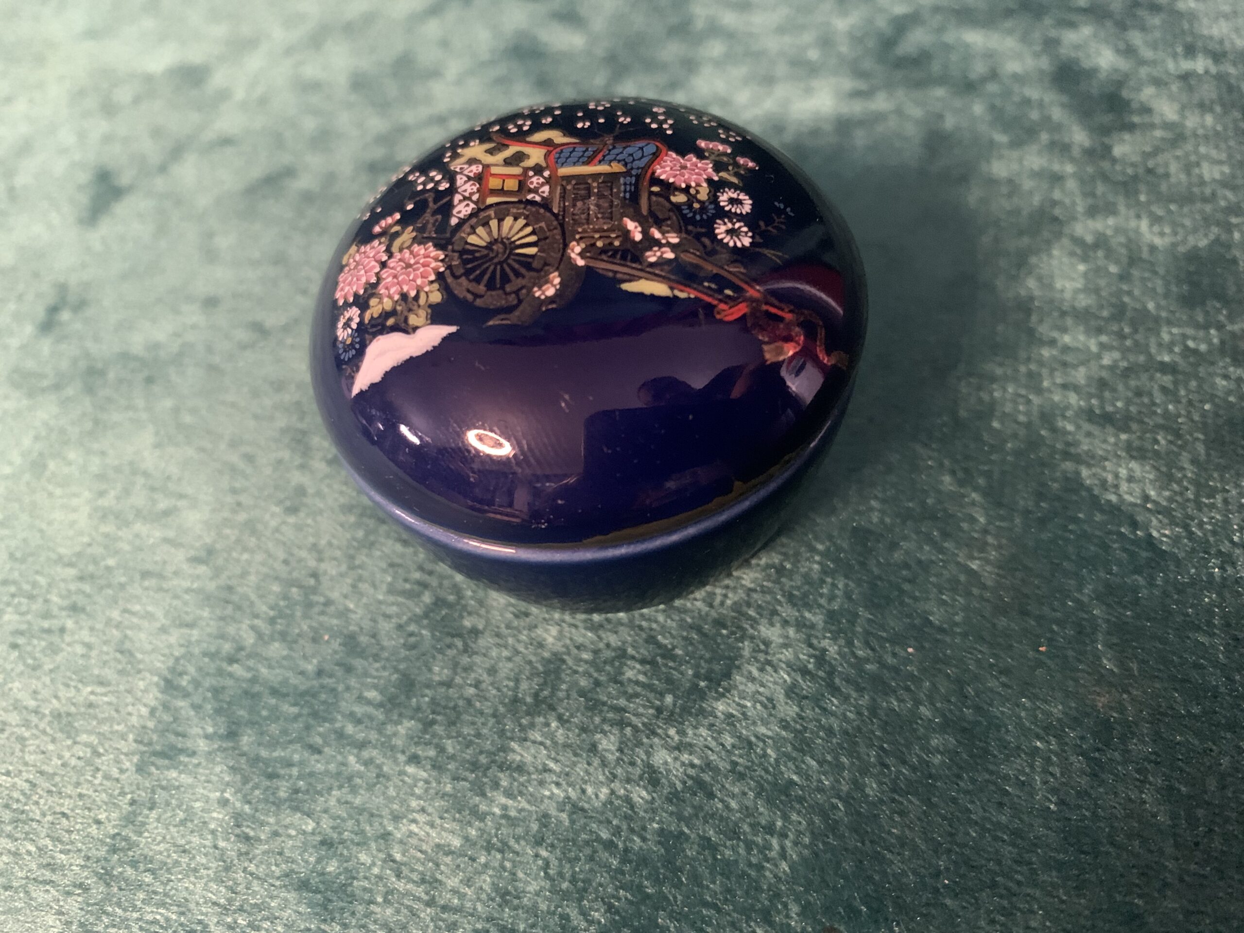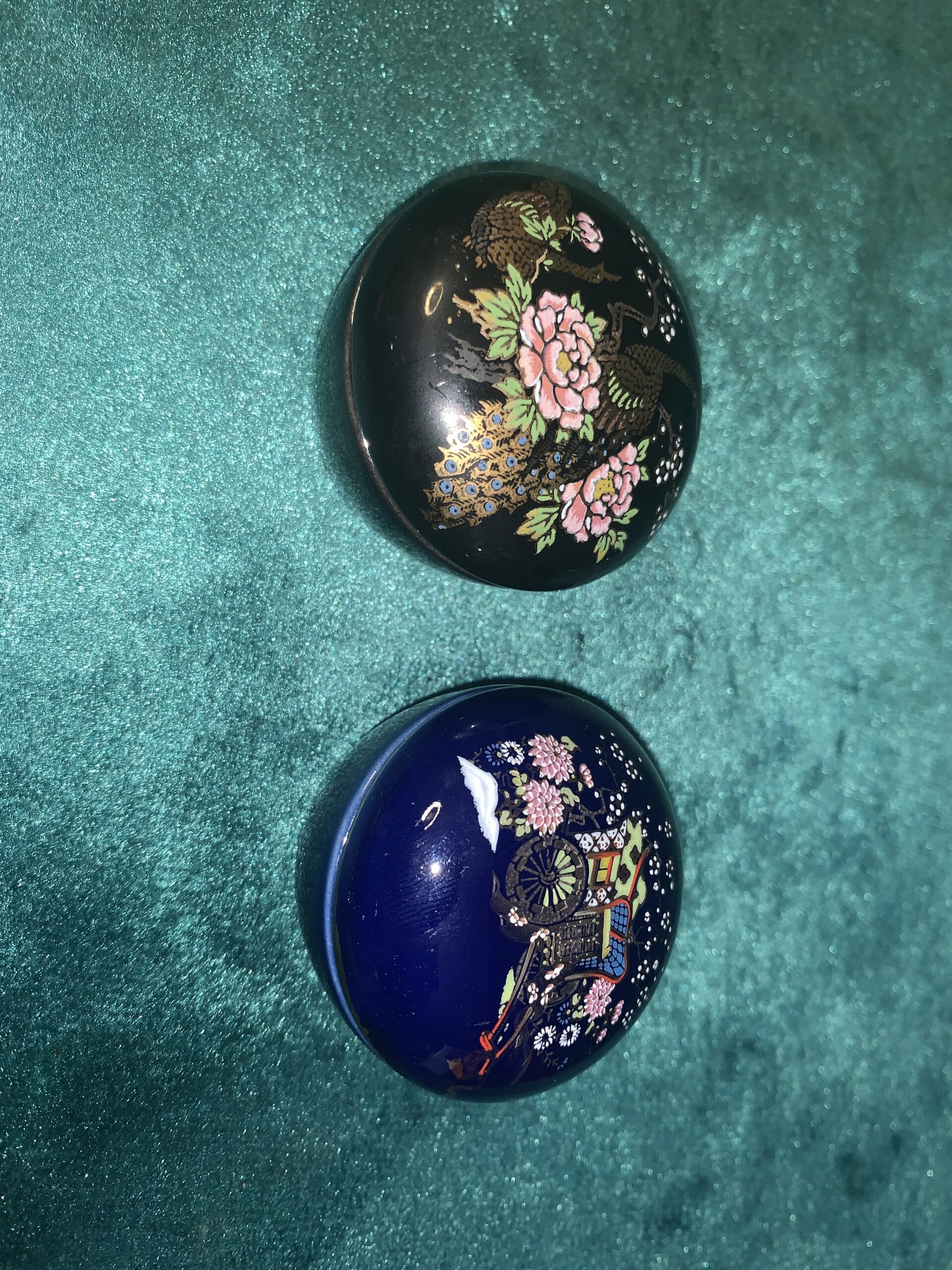 PAREJA DE ALHAJEROS EN PORCELANA JAPONESA PINTADO A MANO, pareja de alhajeros, de forma circular, originarios de Japón, fabricados en porcelana de gran calidad, pintados a mano en policromía con escenas de aves y cotidianas, mediados del siglo XX.