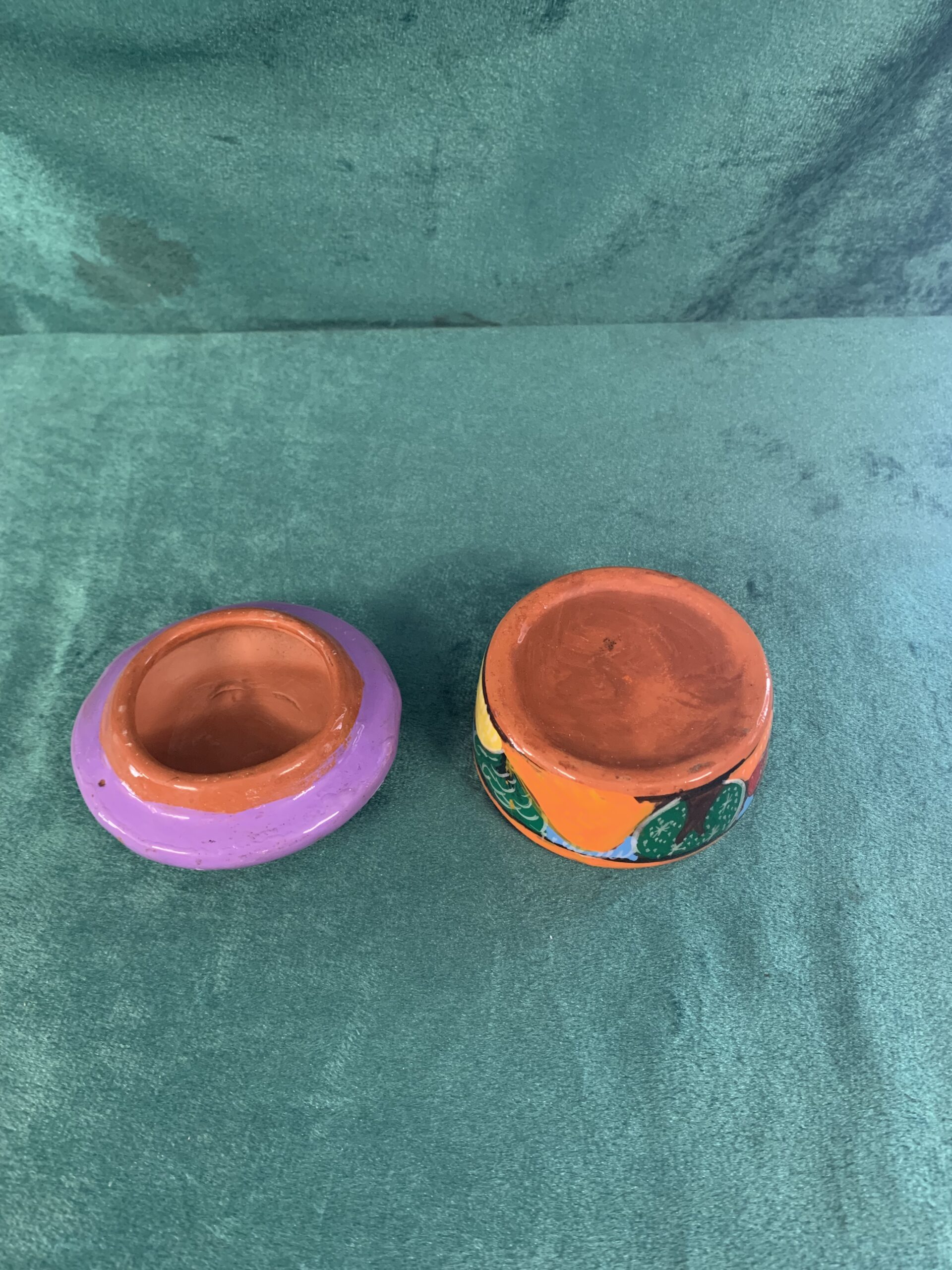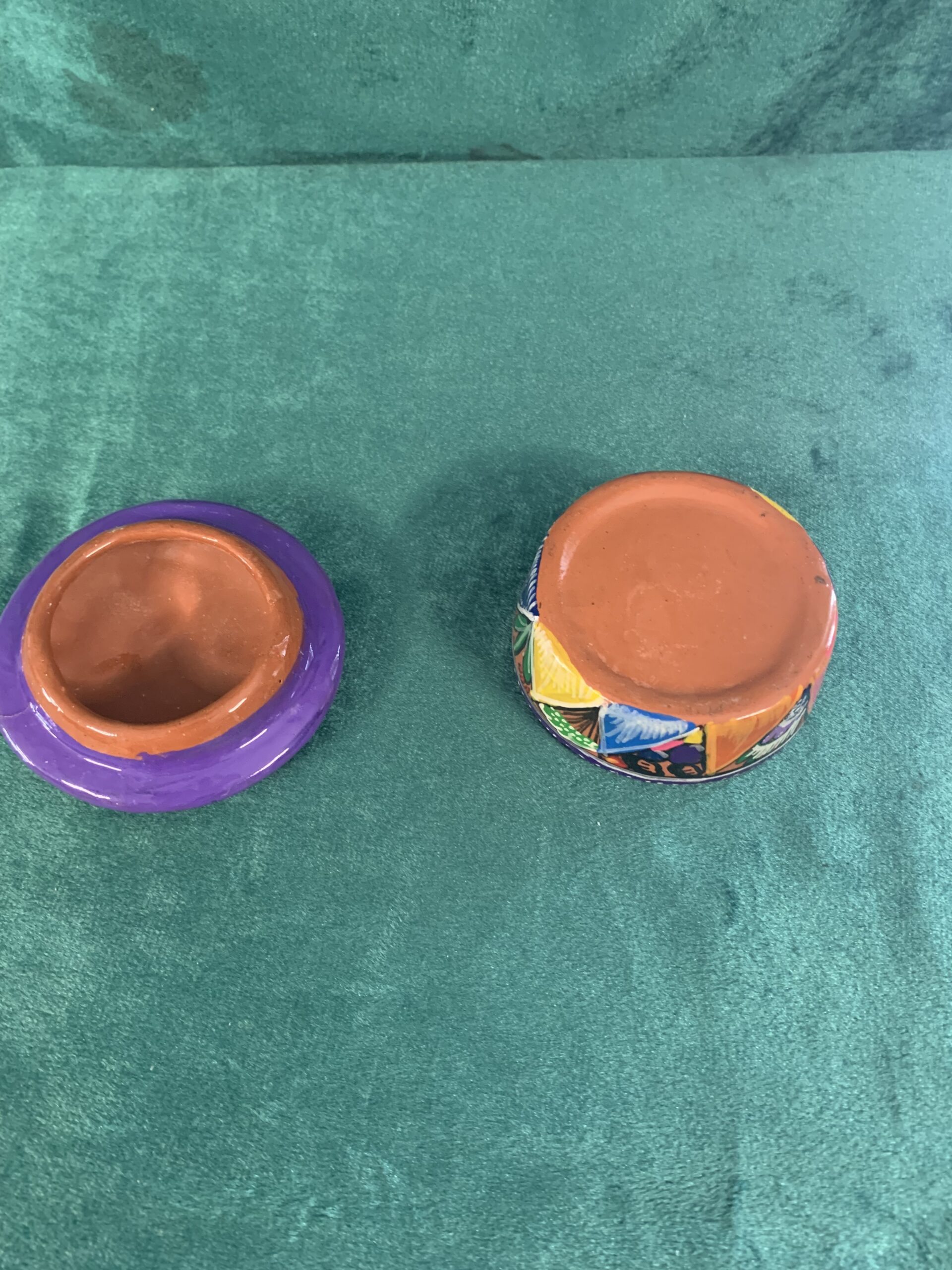PAREJA DE ALHAJEROS EN ARCILLA, pareja de alhajeros de forma circular, a juego, en arcilla originarios de México , representando los dioses Mayas