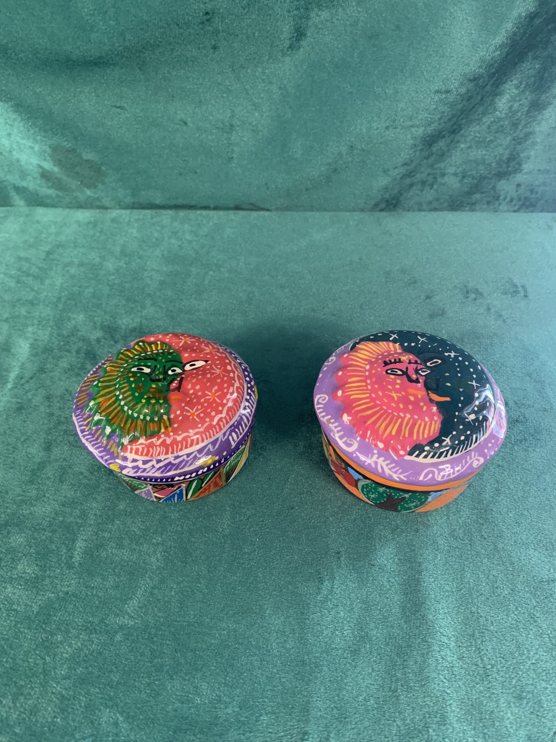del Sol y la Luna, realizados y pintados a mano, con todo el misticismo que rodea los dioses Mayas, posiblemente de los años 80.