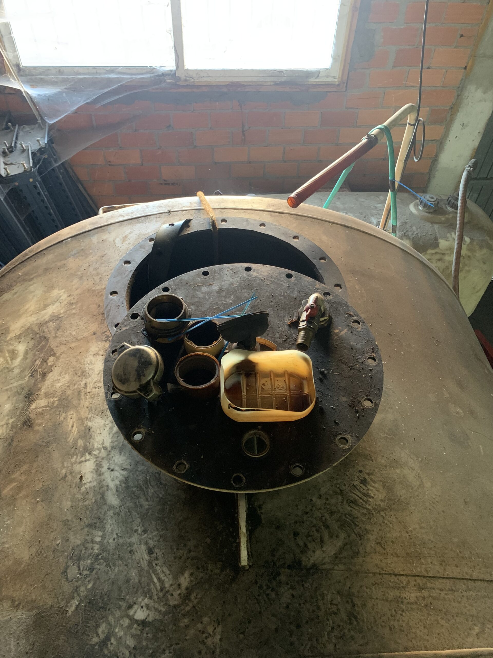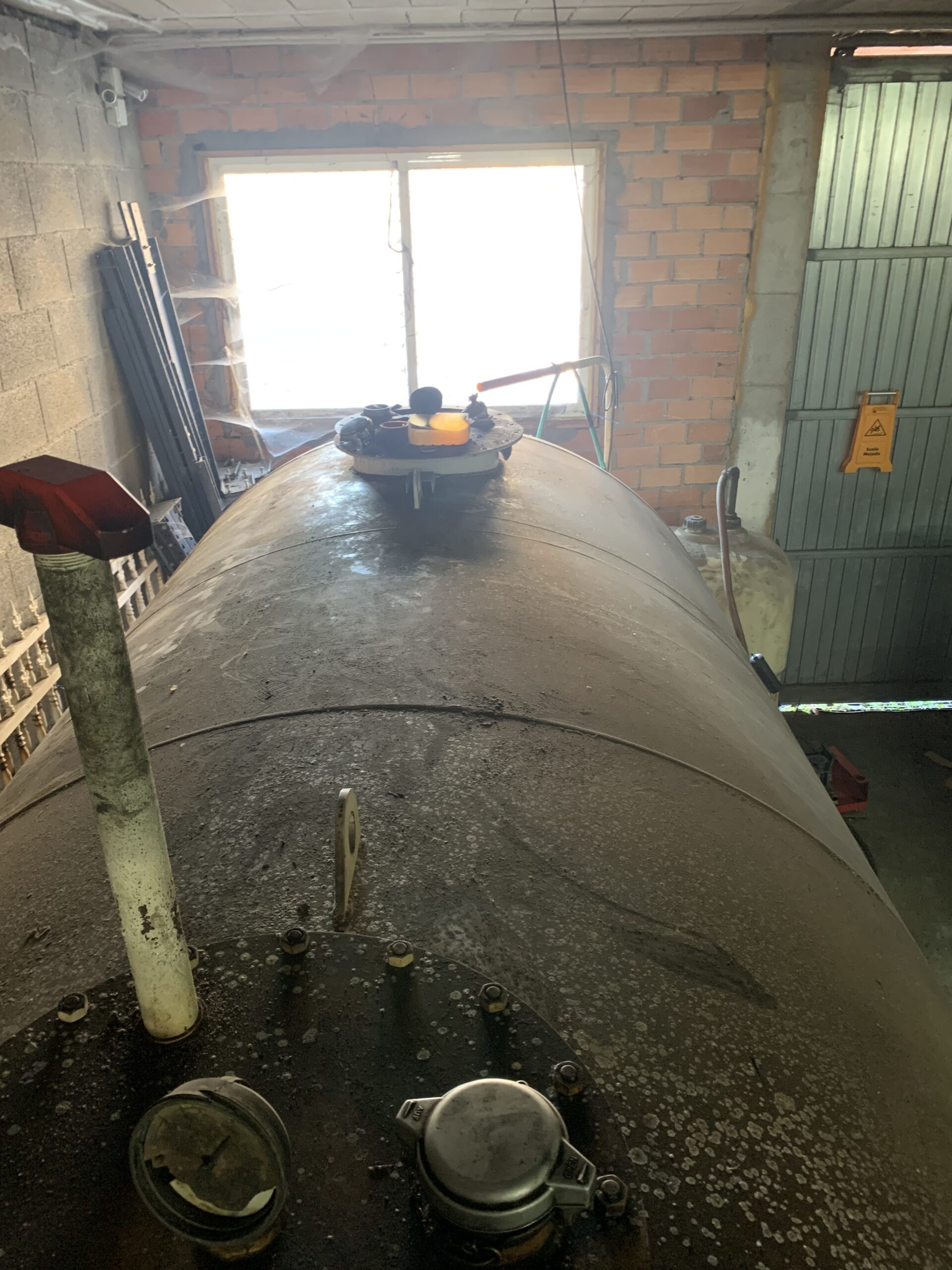 Deposito metálico industrial para carburantes u otros, con separación interior que permite su utilización simultanea de dos tipos de carburantes, tiene en cada extremo una bomba de servicio con medidor, teniendo una escalera de servicio en cada punta del depósito.