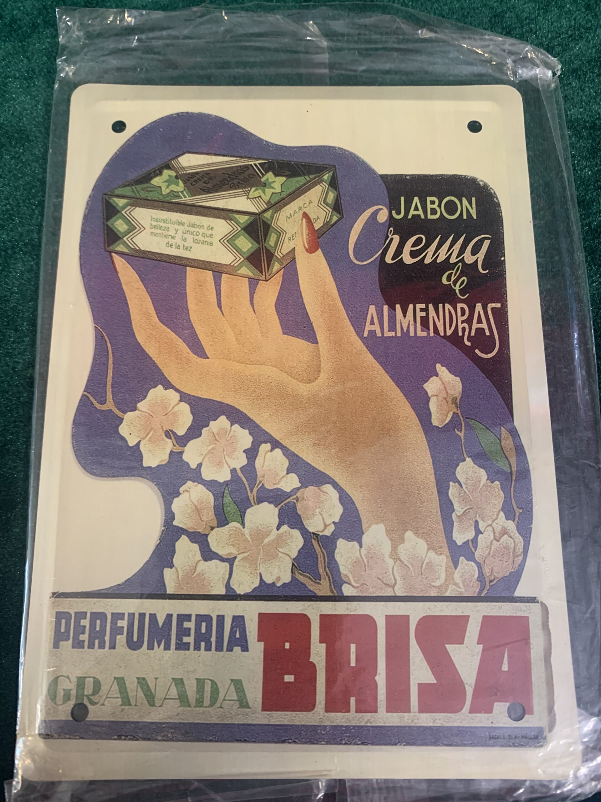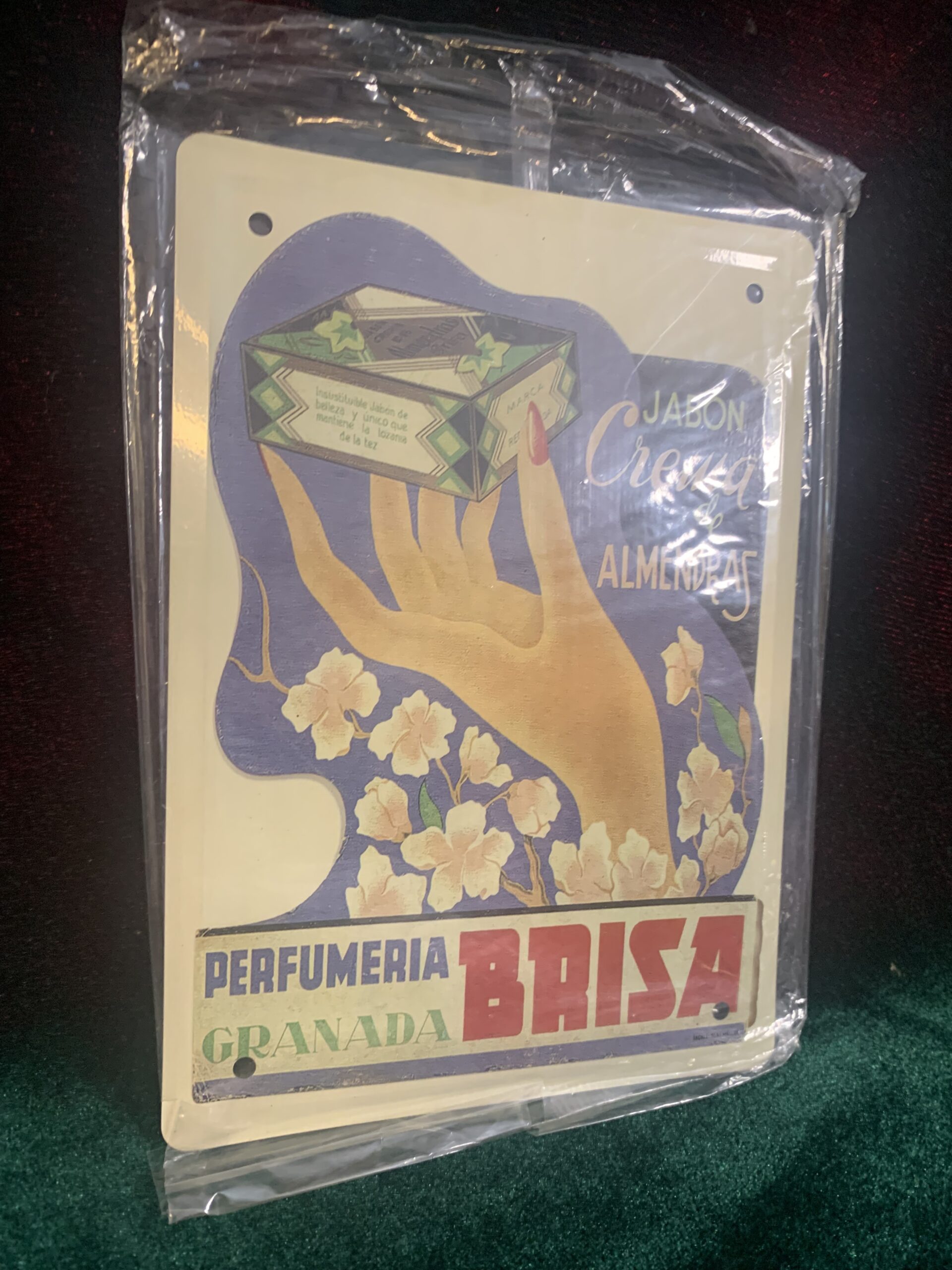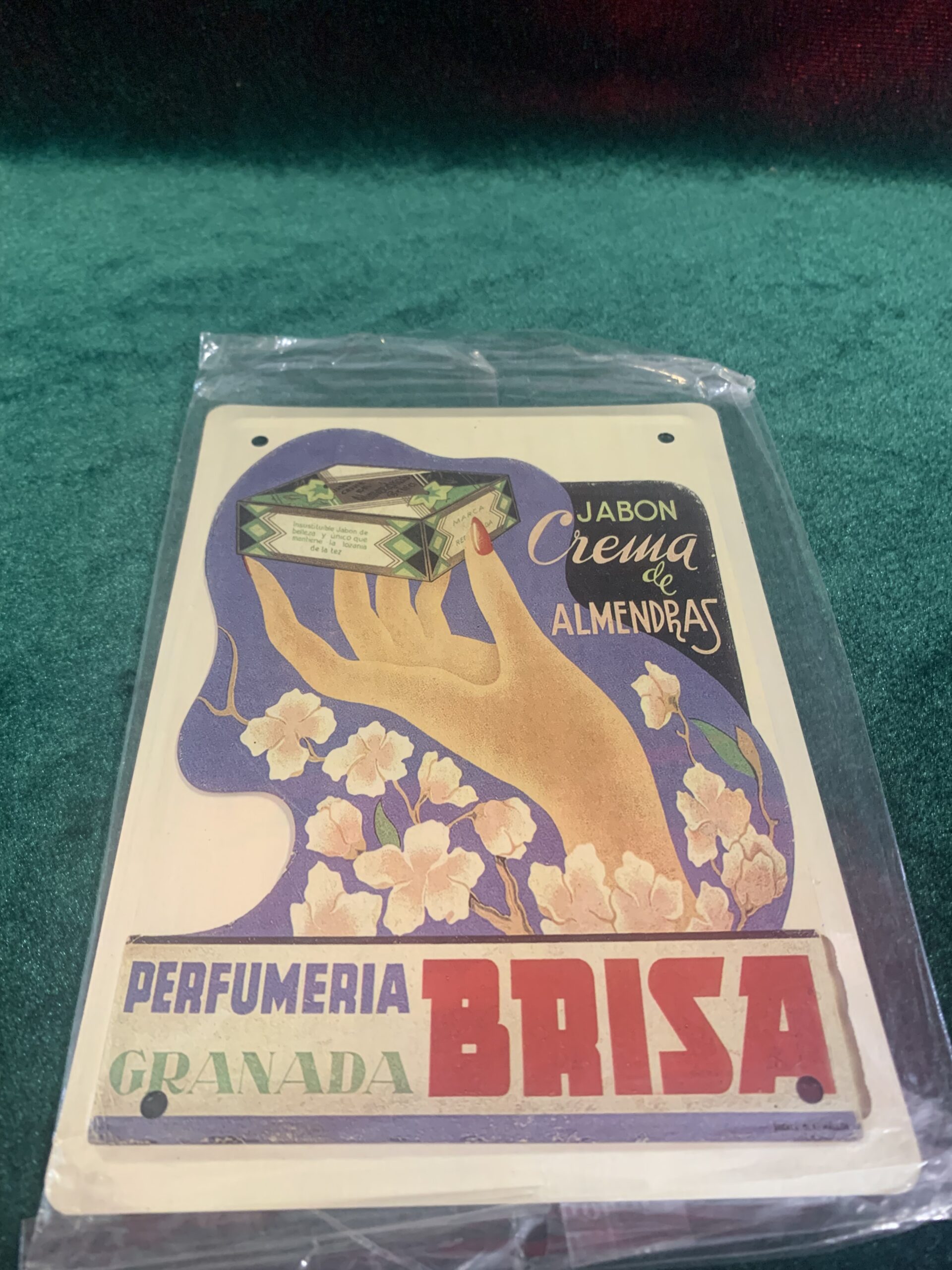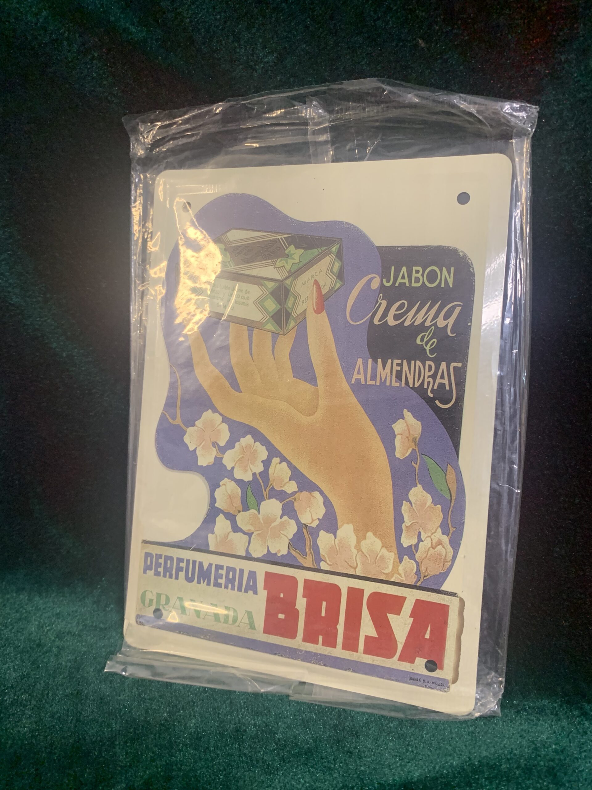 CARTEL PUBLICITARIO METÁLICO PERFUMERIA BRISA, representación del cartel publicitario de la empresa . del año 1930, fabricado en chapa metálica litografiada de la colección «Los anuncios de tu vida, 1900-1960»,