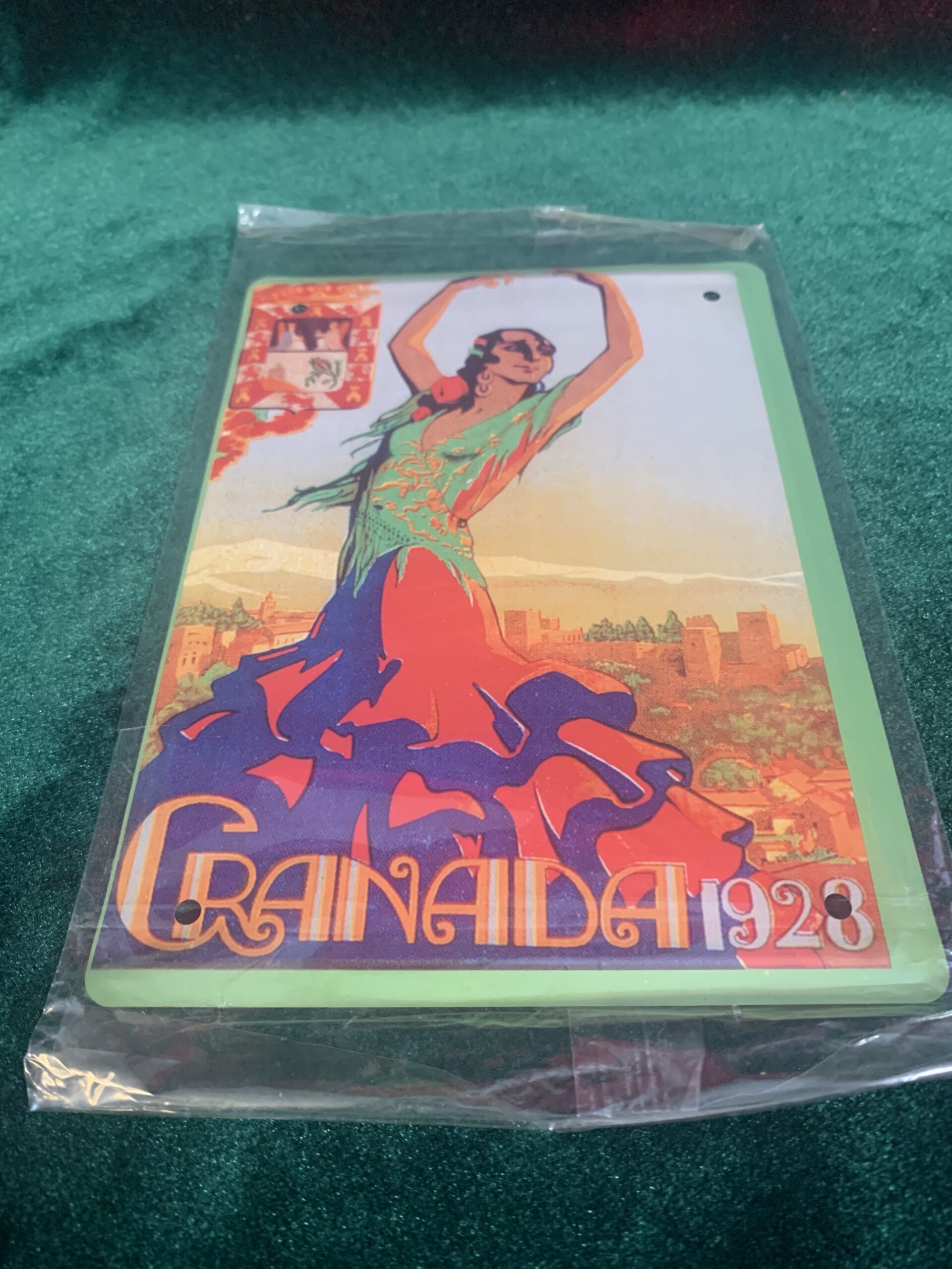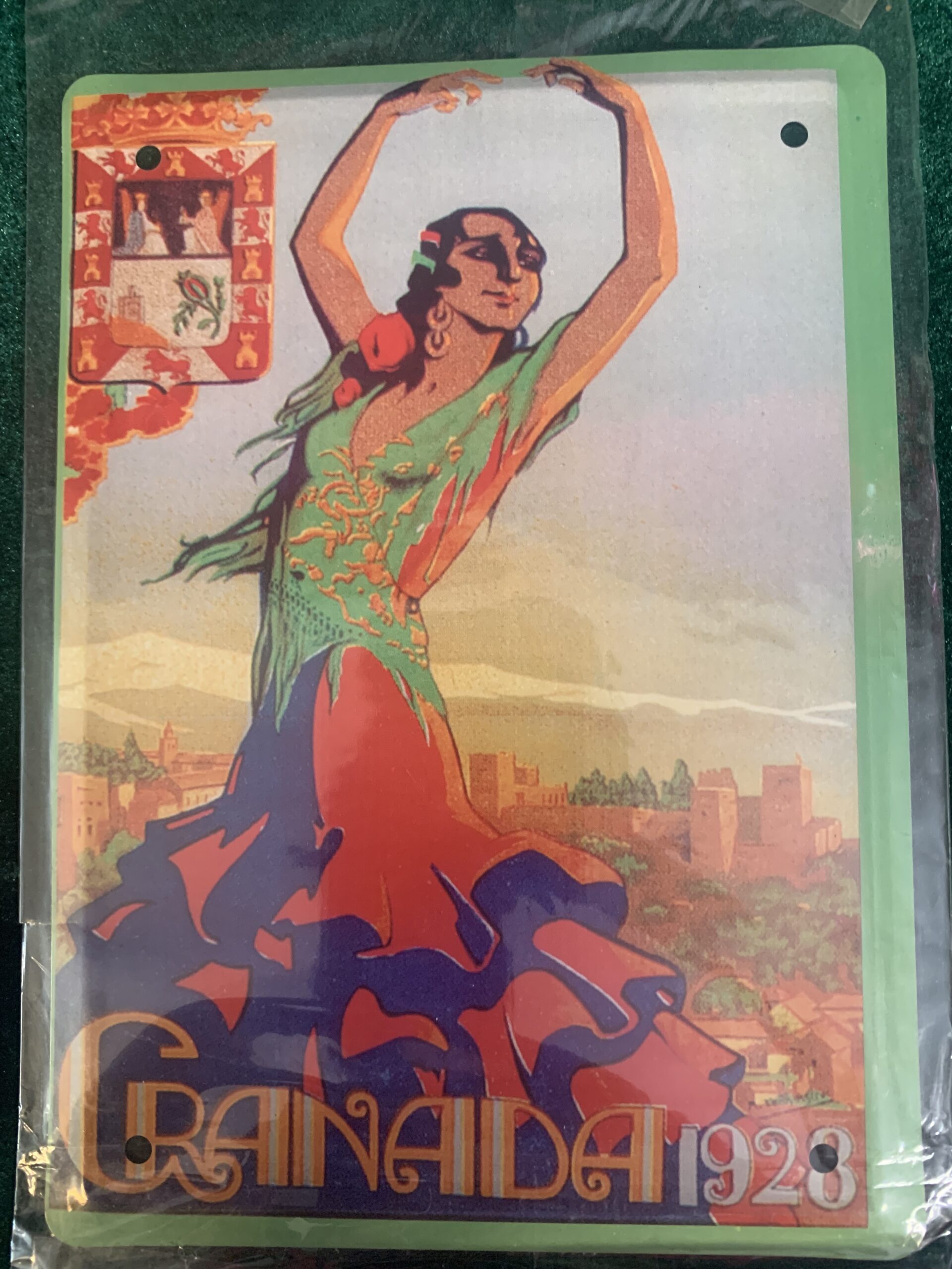 CARTEL PUBLICITARIO METÁLICO «GRANADA», representación del cartel publicitario de Fiestas del Corpus Christi de Granada de 1923, fabricado en chapa metálica litografiada de la colección «Los anuncios de tu vida, 1900-1960»,
