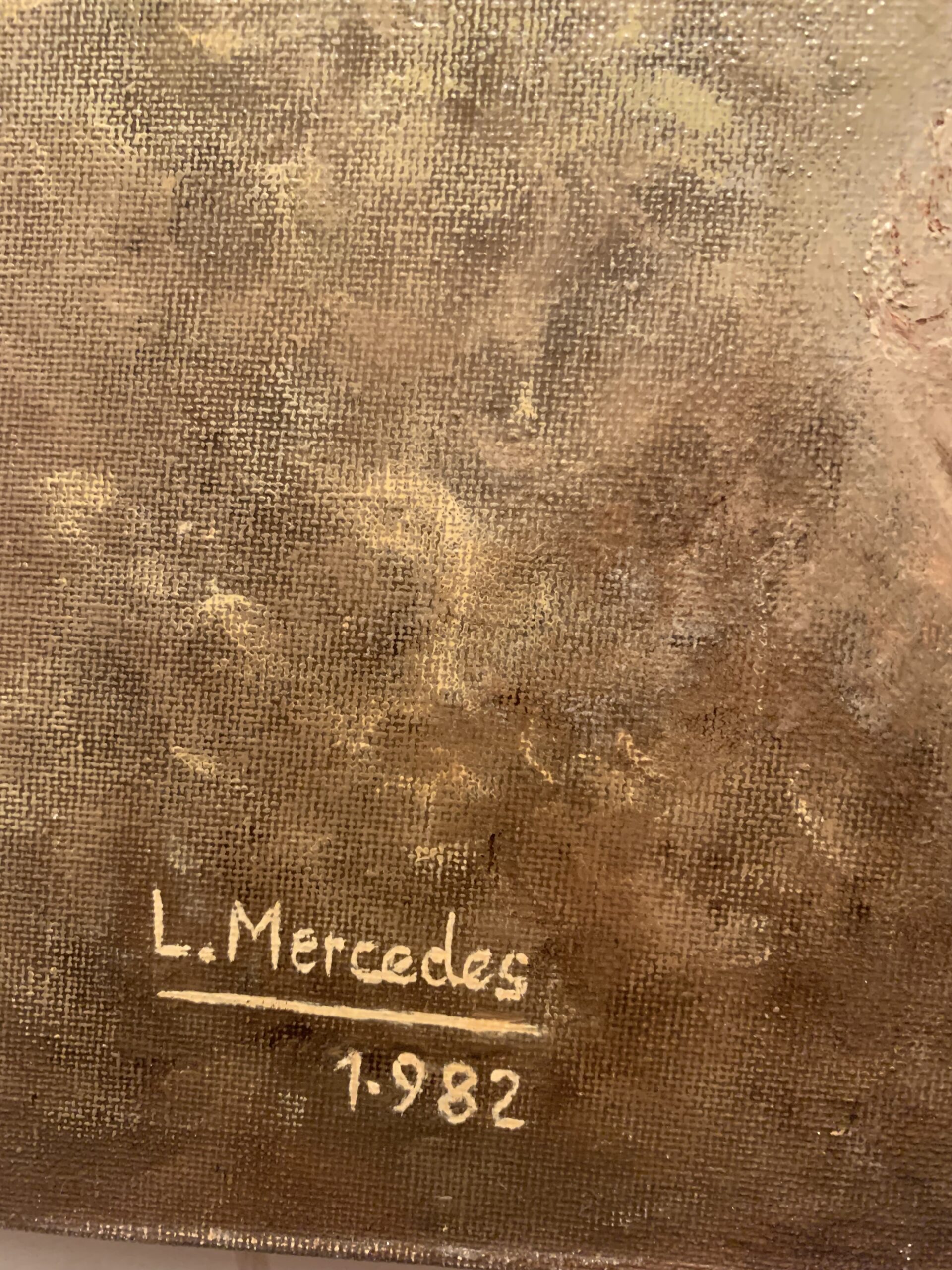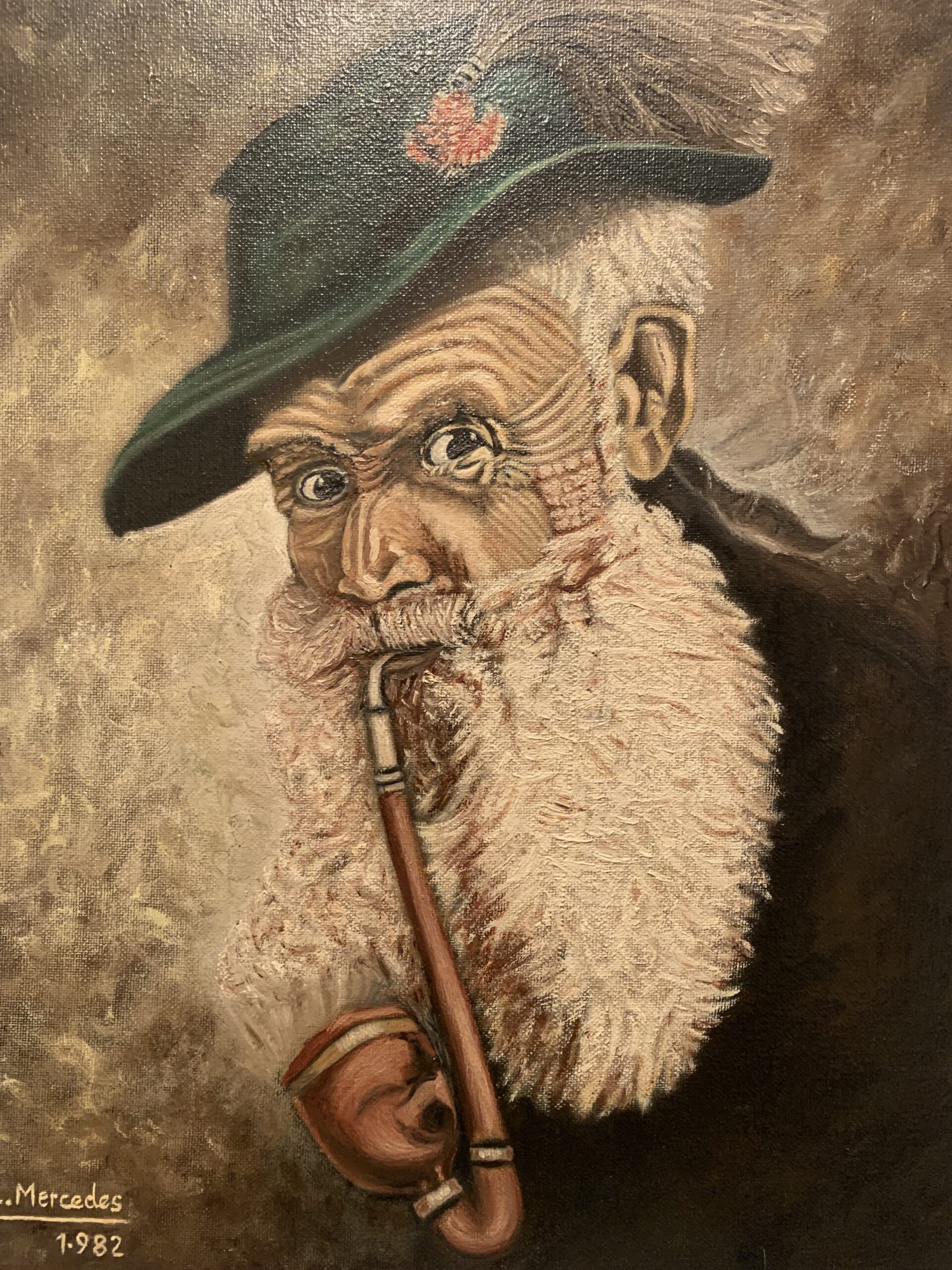 MAGNIFICO CUADRO AL OLEO SOBRE LIENZO DE LA ARTISTA L. MERCEDES, obra fechada en en 1982, representando un retrato de «El viejo» que realizado con gran profundidad y un estilo depurado en el cual llama la atención esa mirada inquisitiva cariñosa de los abuelos.