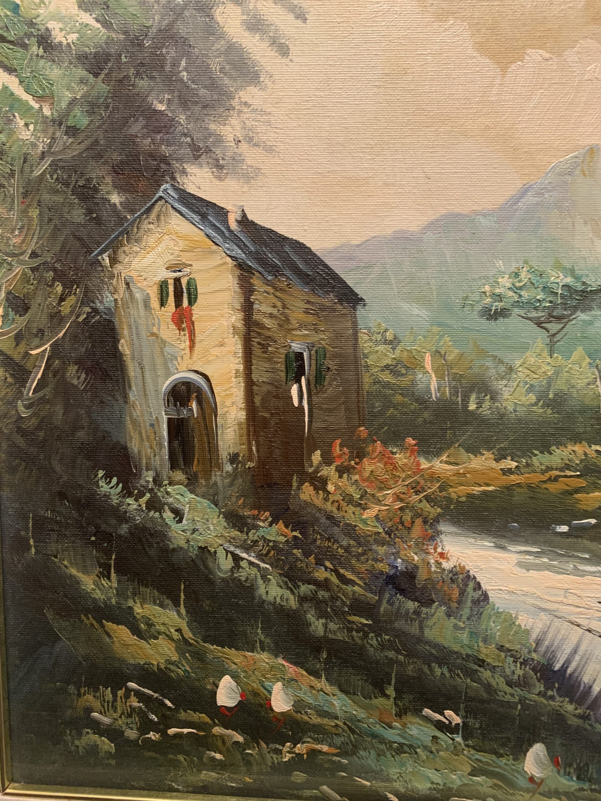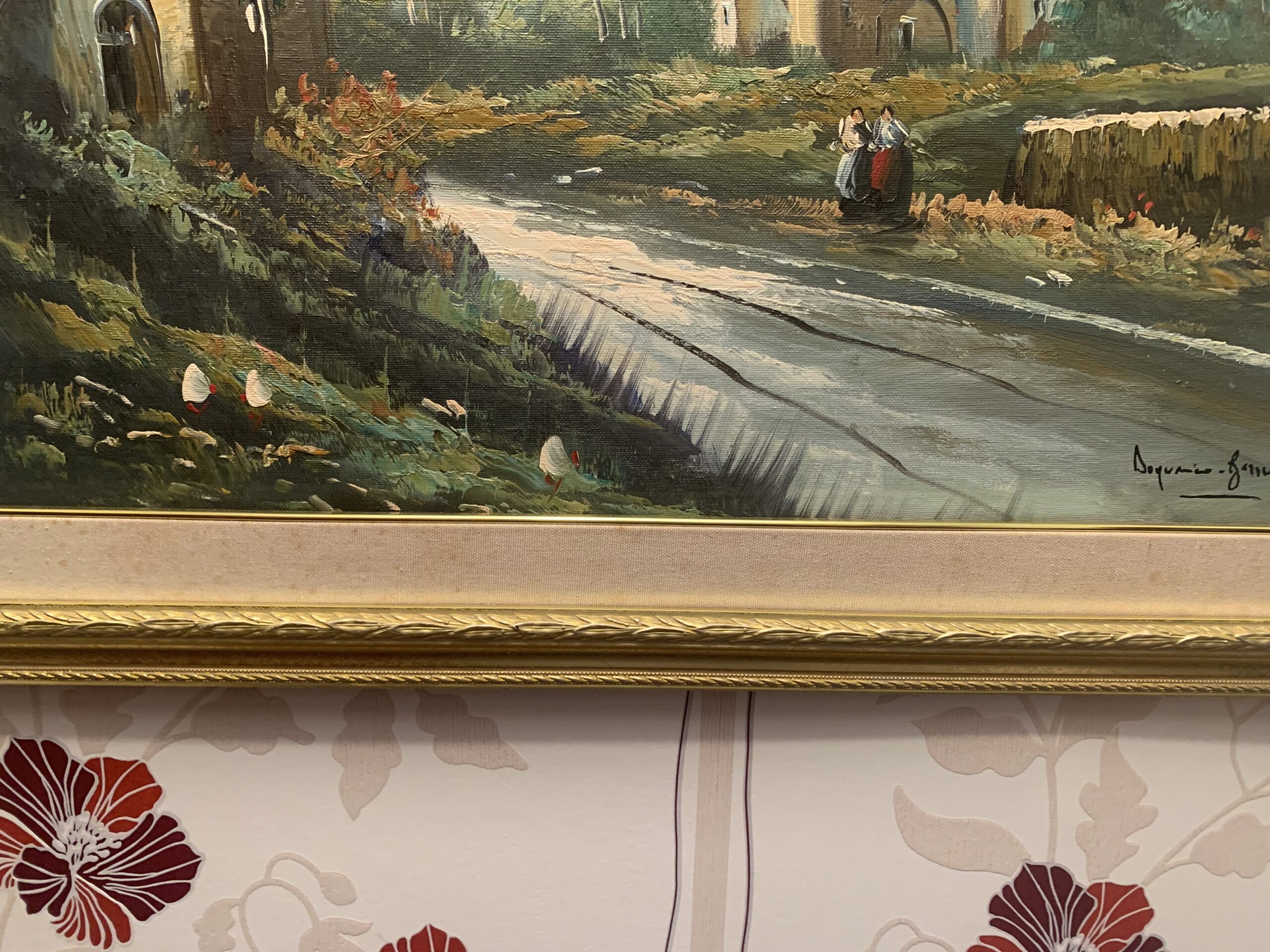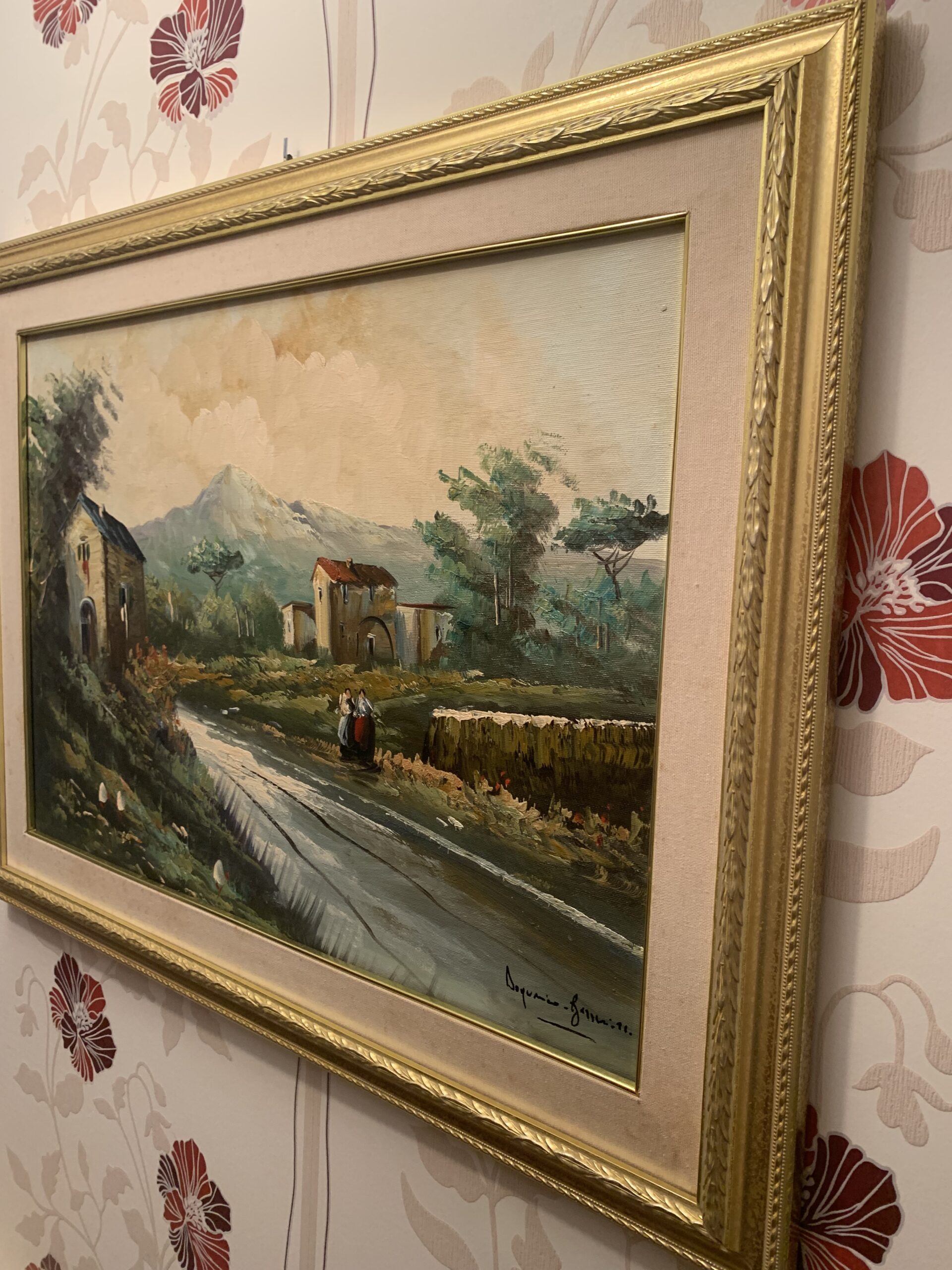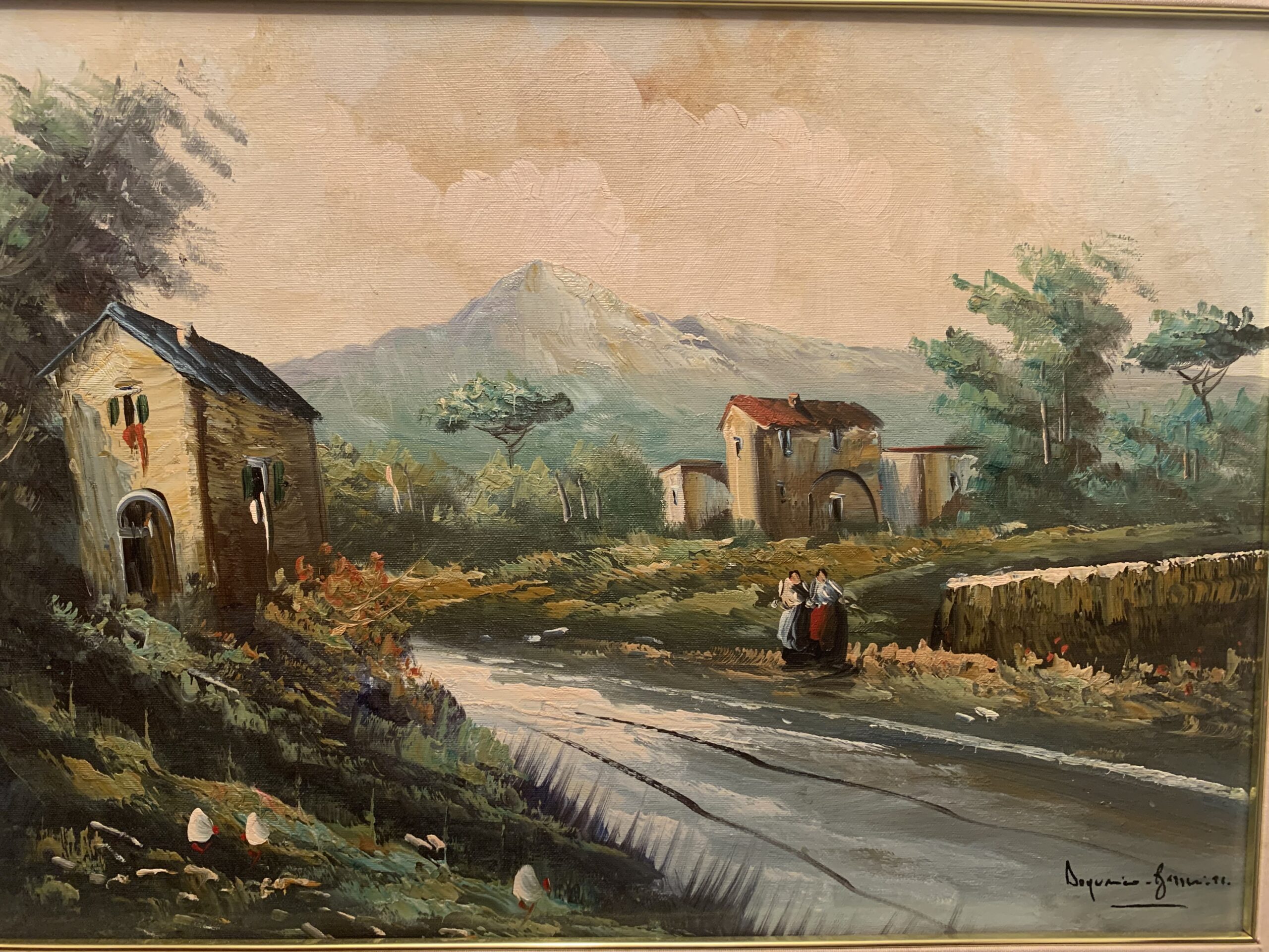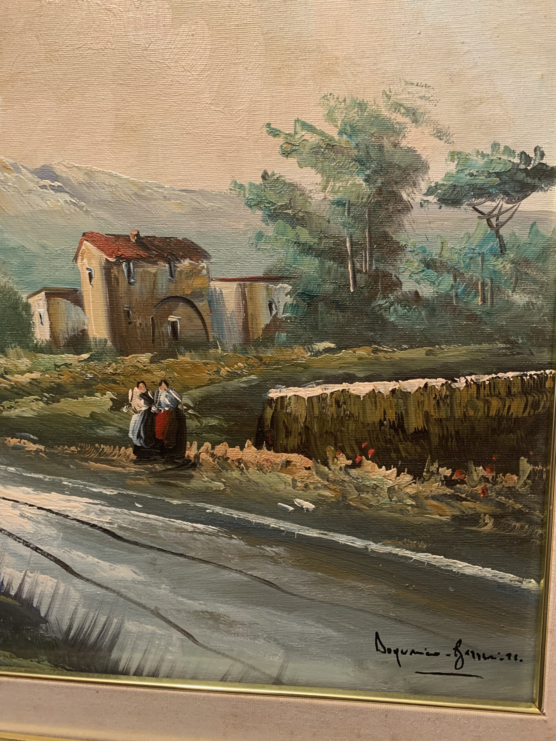 Oleo sobre lienzo, de tamaño medio, del pintor italiano Doménico de apellido desconocido «Barrichelo», se trata de una obra de estilo impresionista representando un pueblo italiano, gran obra realizada con una técnica depurada.