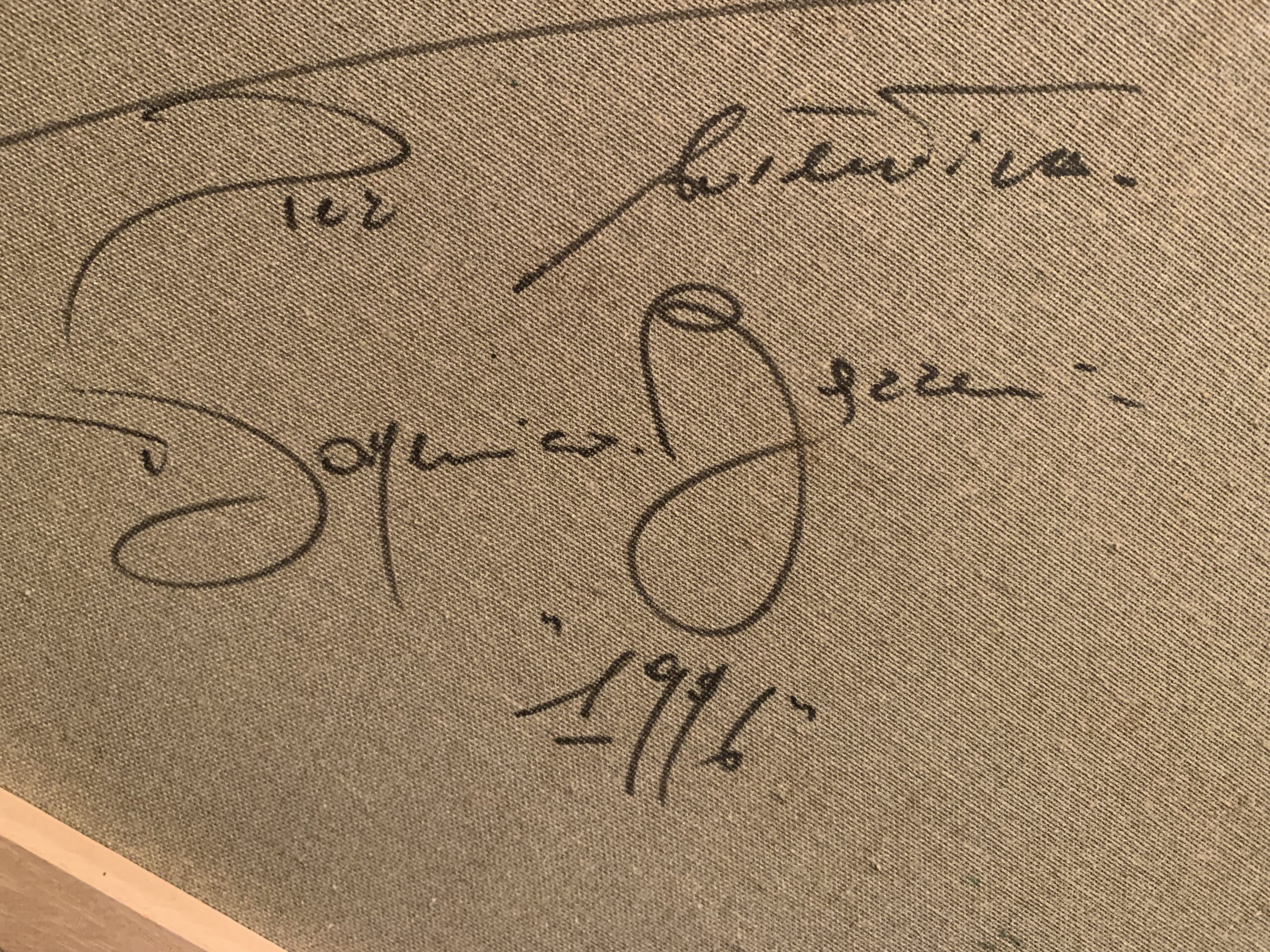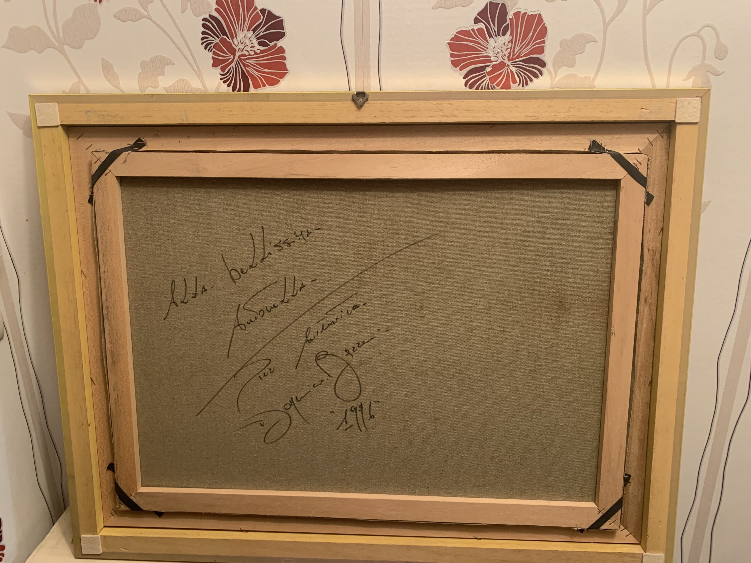 La obra se halla dedicada en su parte posterior y fechada en 1996.