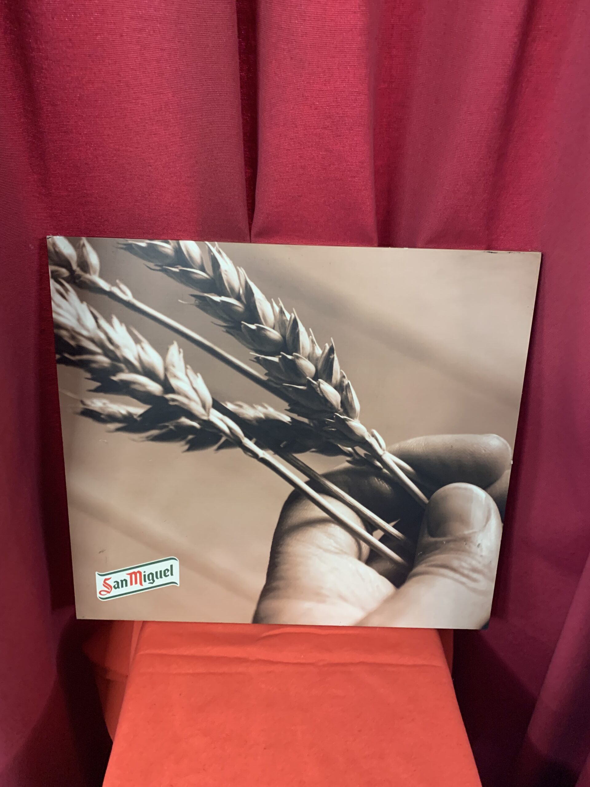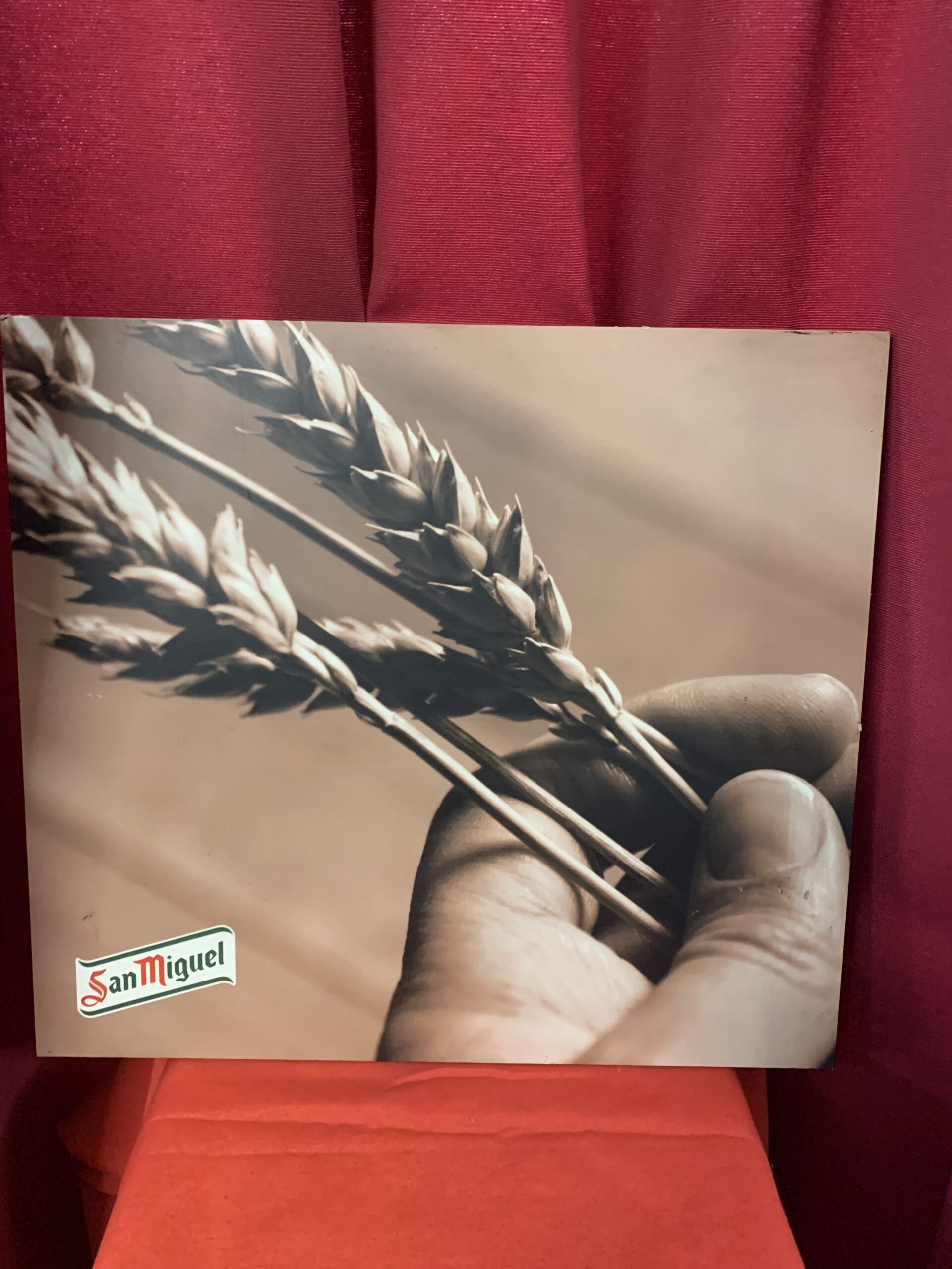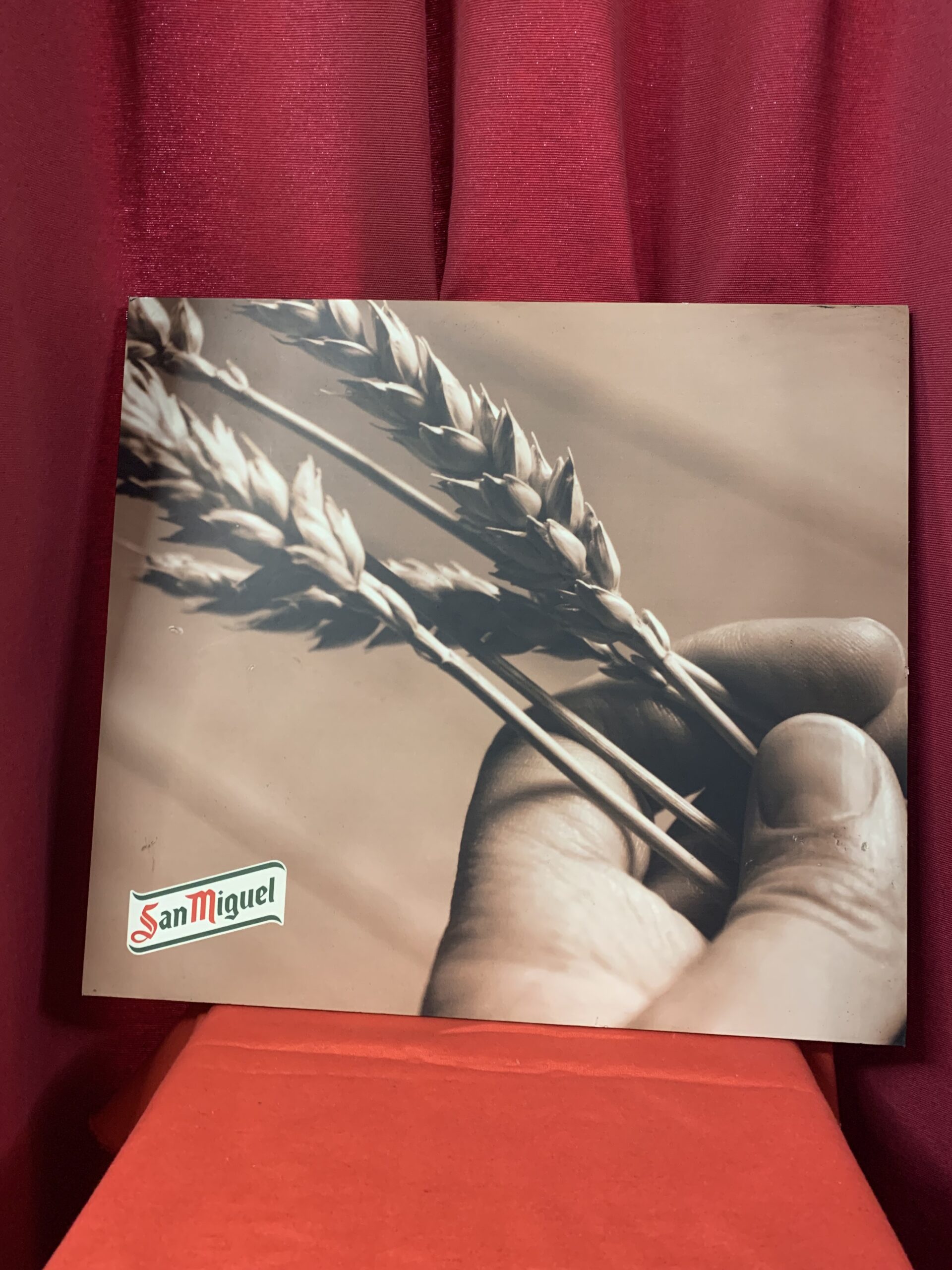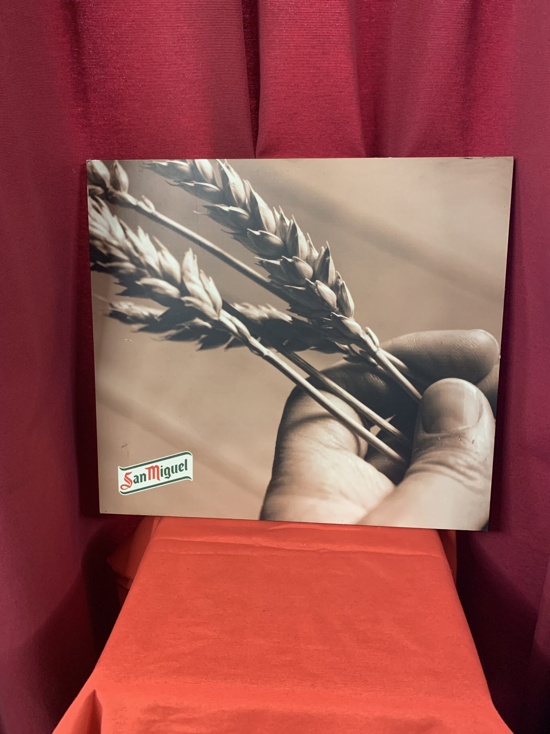 CUADRO PUBLICITARIO VINTAGE, cervezas San Miguel, preciosa imagen antigua de la conocida cervecera en la que se representa un puñado de espigas.