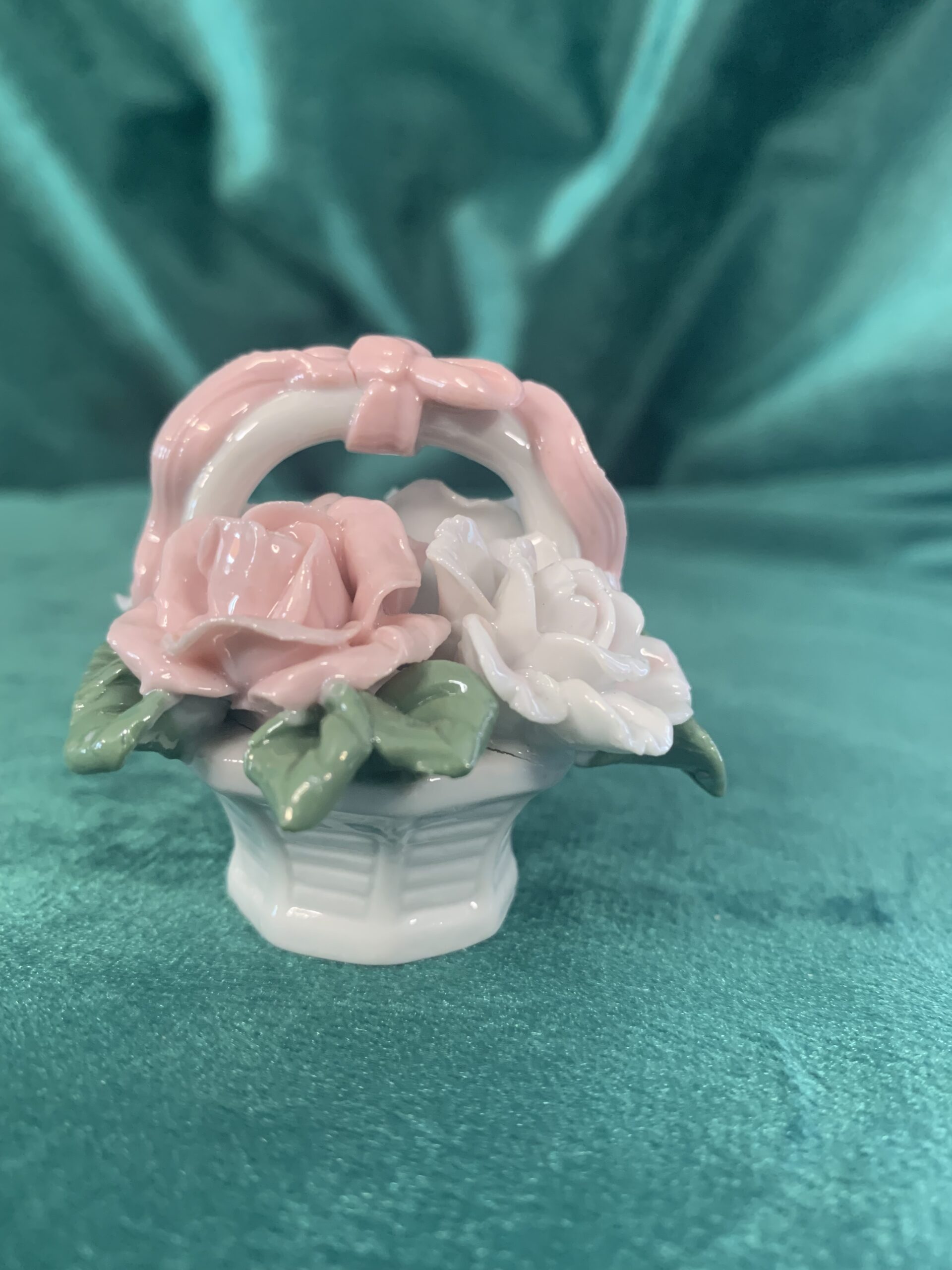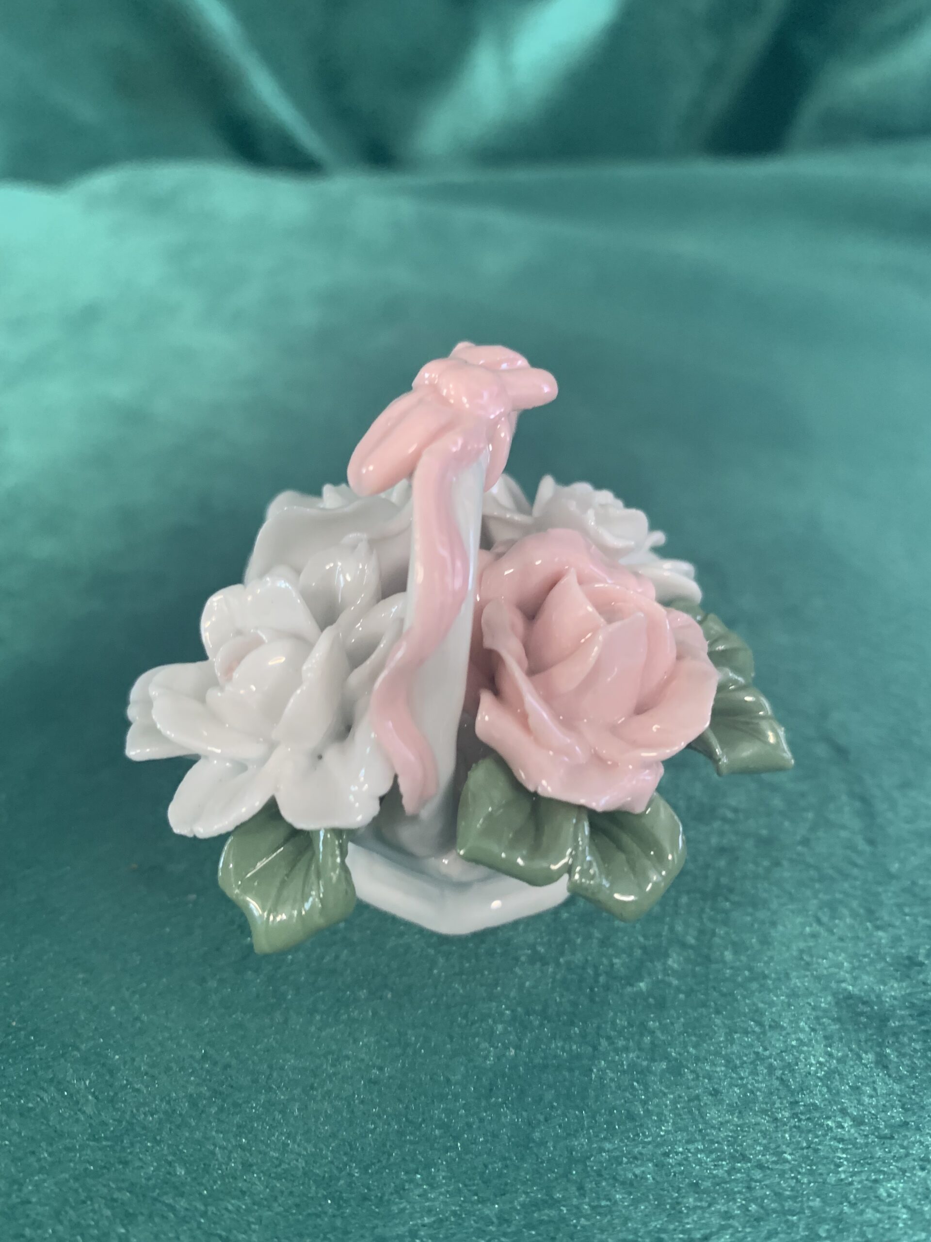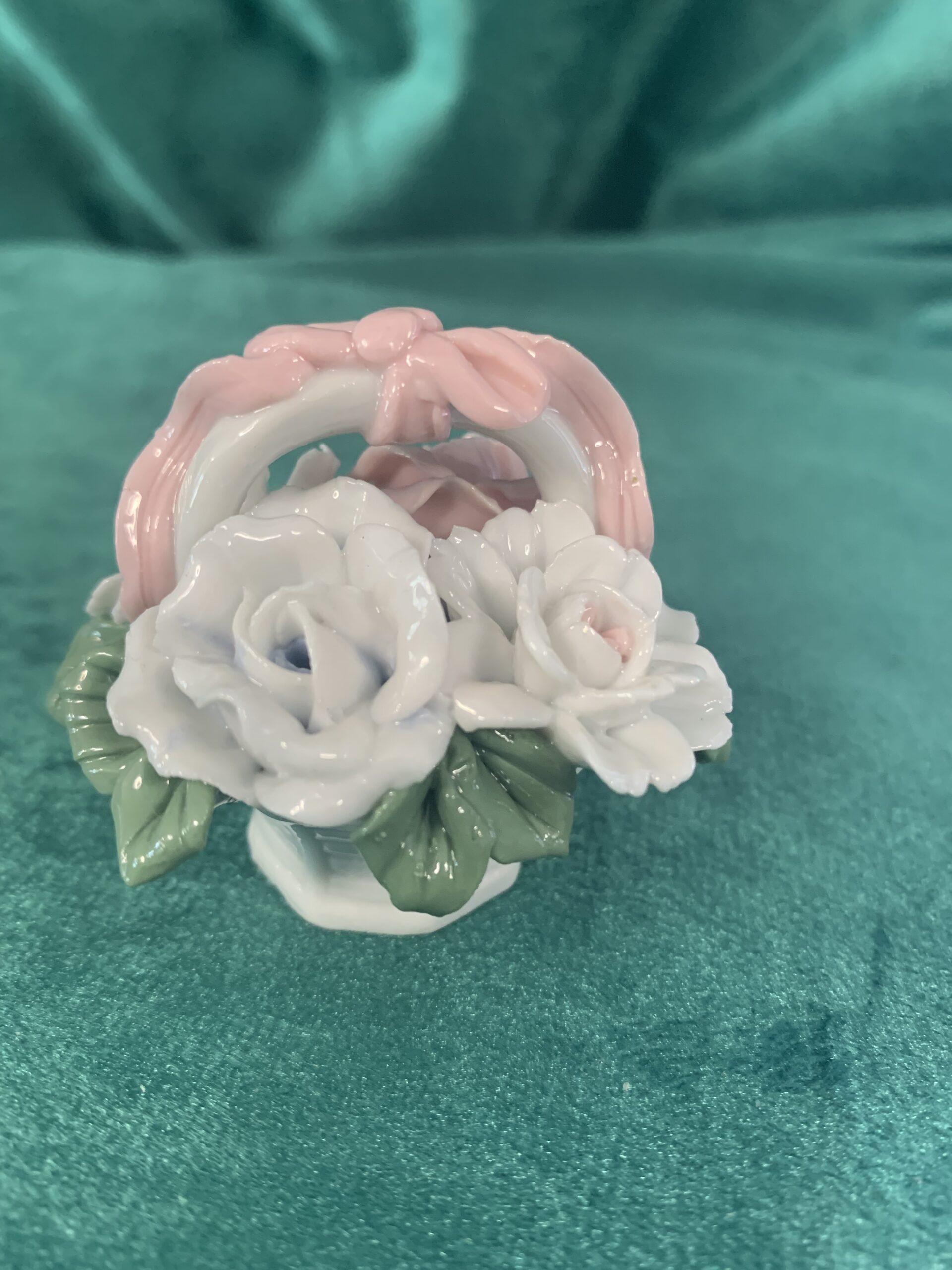 MINIATURA DE PORCELANA, figura de porcelana estilo capodimonte en la cual se representa un cesto de flores, posiblemente años 90/00