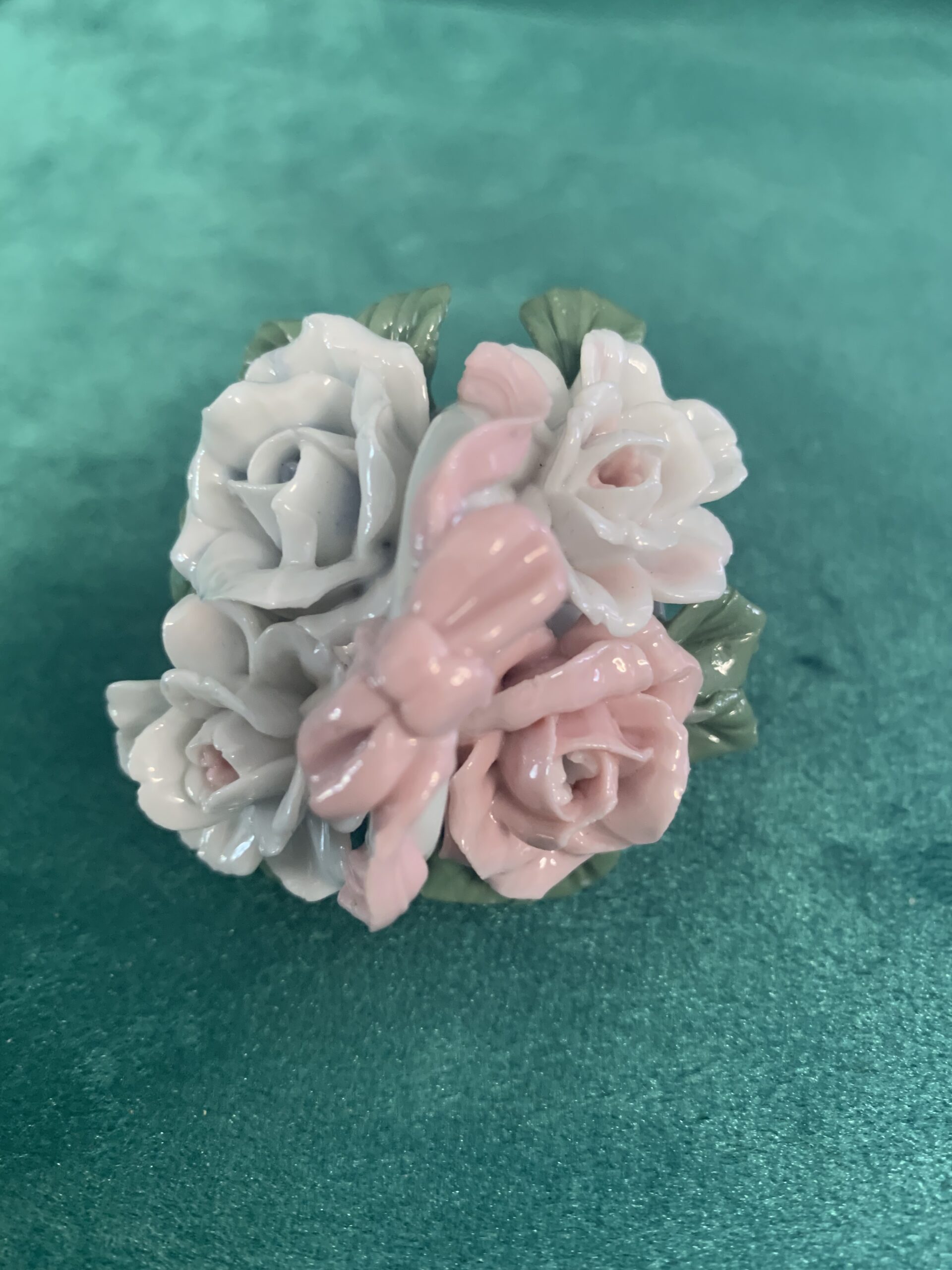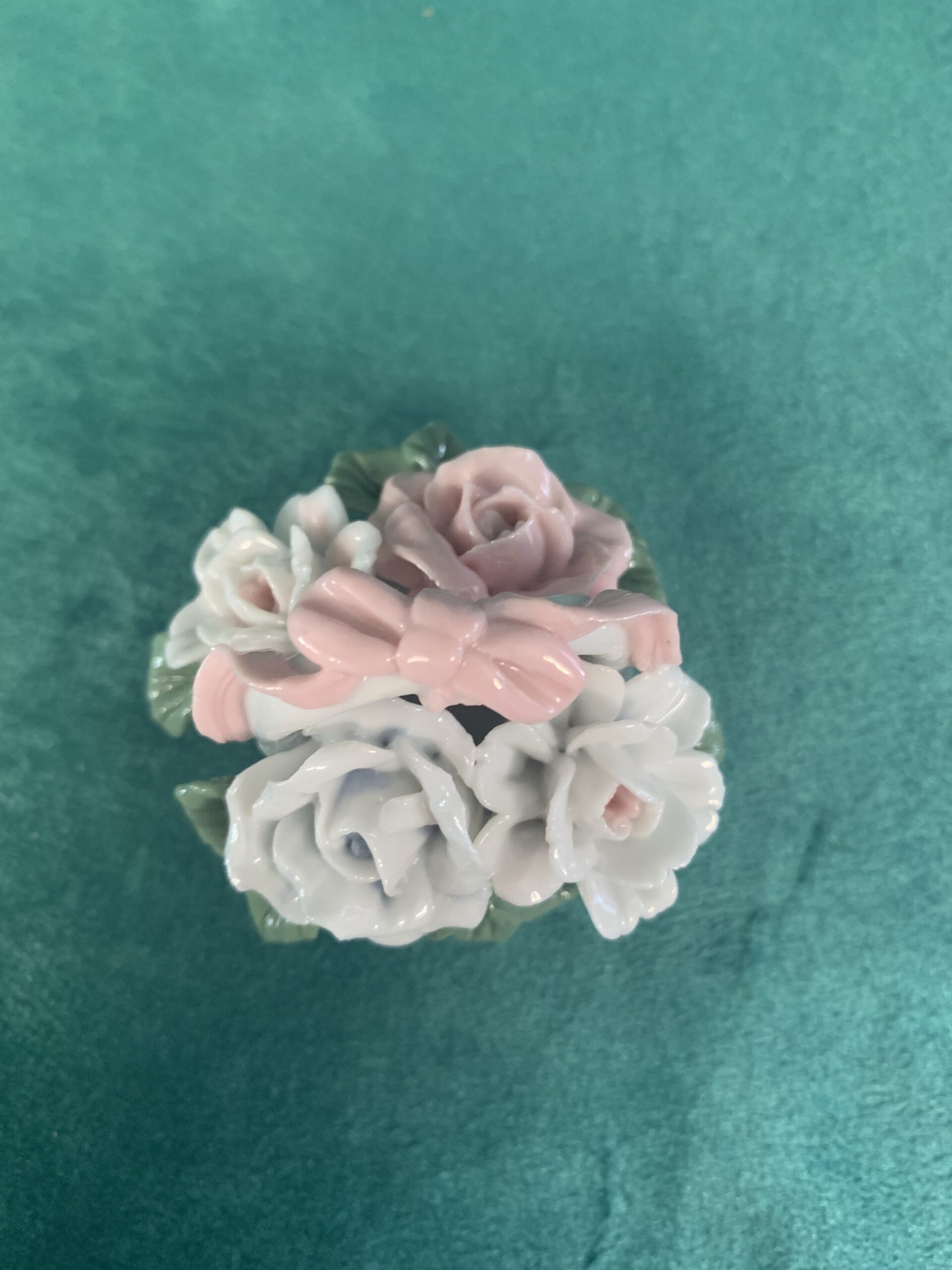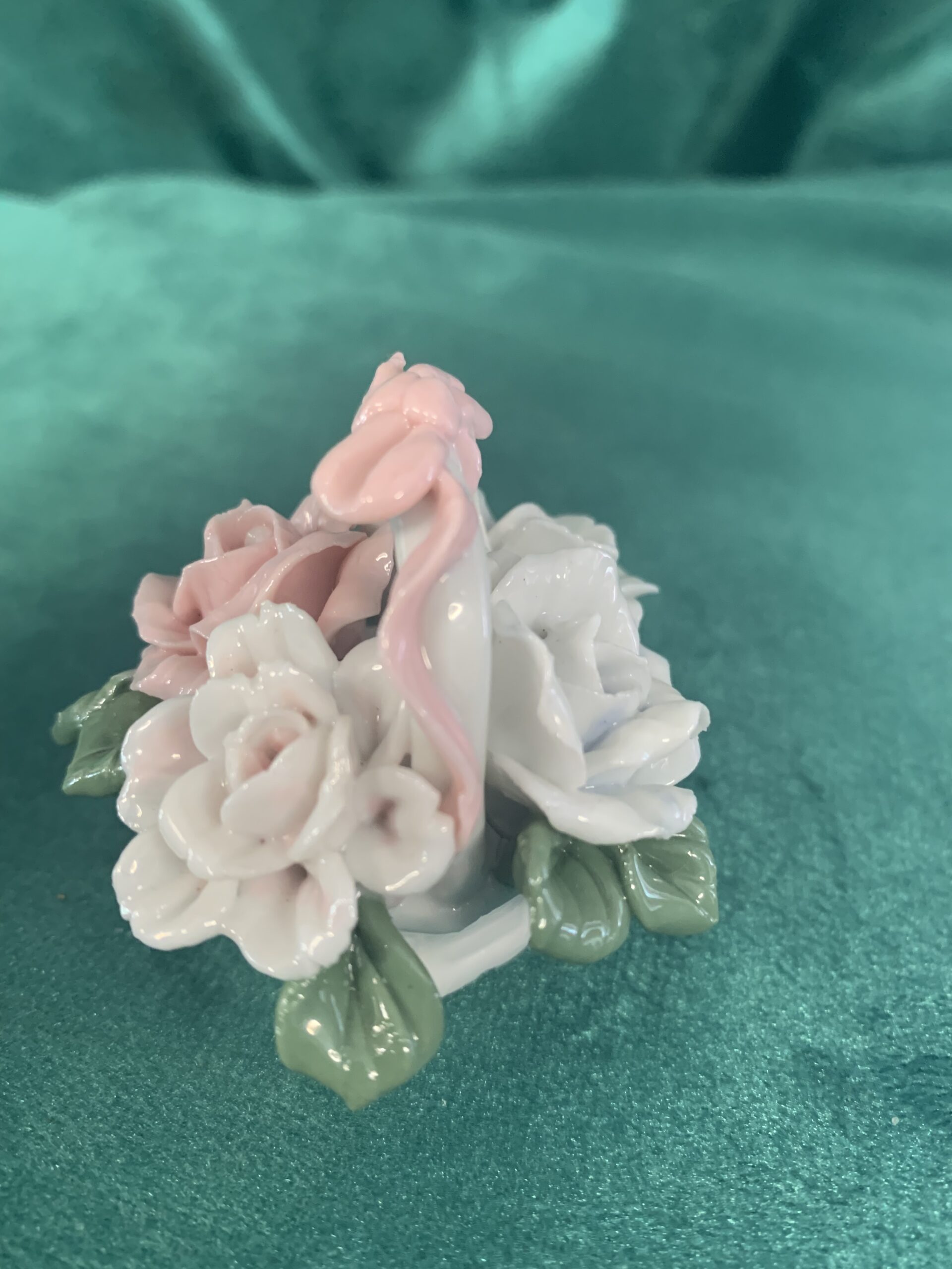MINIATURA DE PORCELANA, figura de porcelana estilo capodimonte en la cual se representa un cesto de flores, posiblemente años 90/00