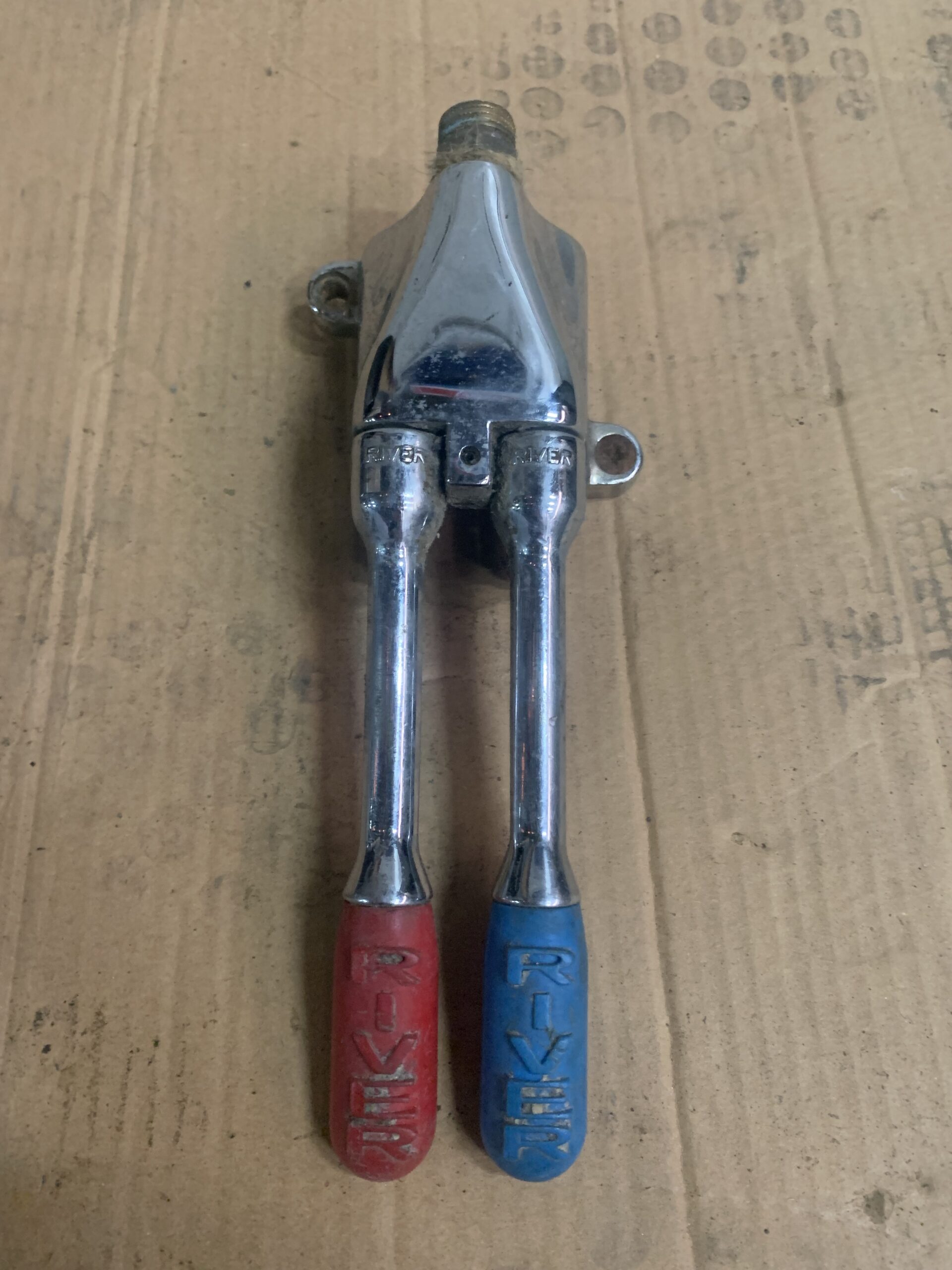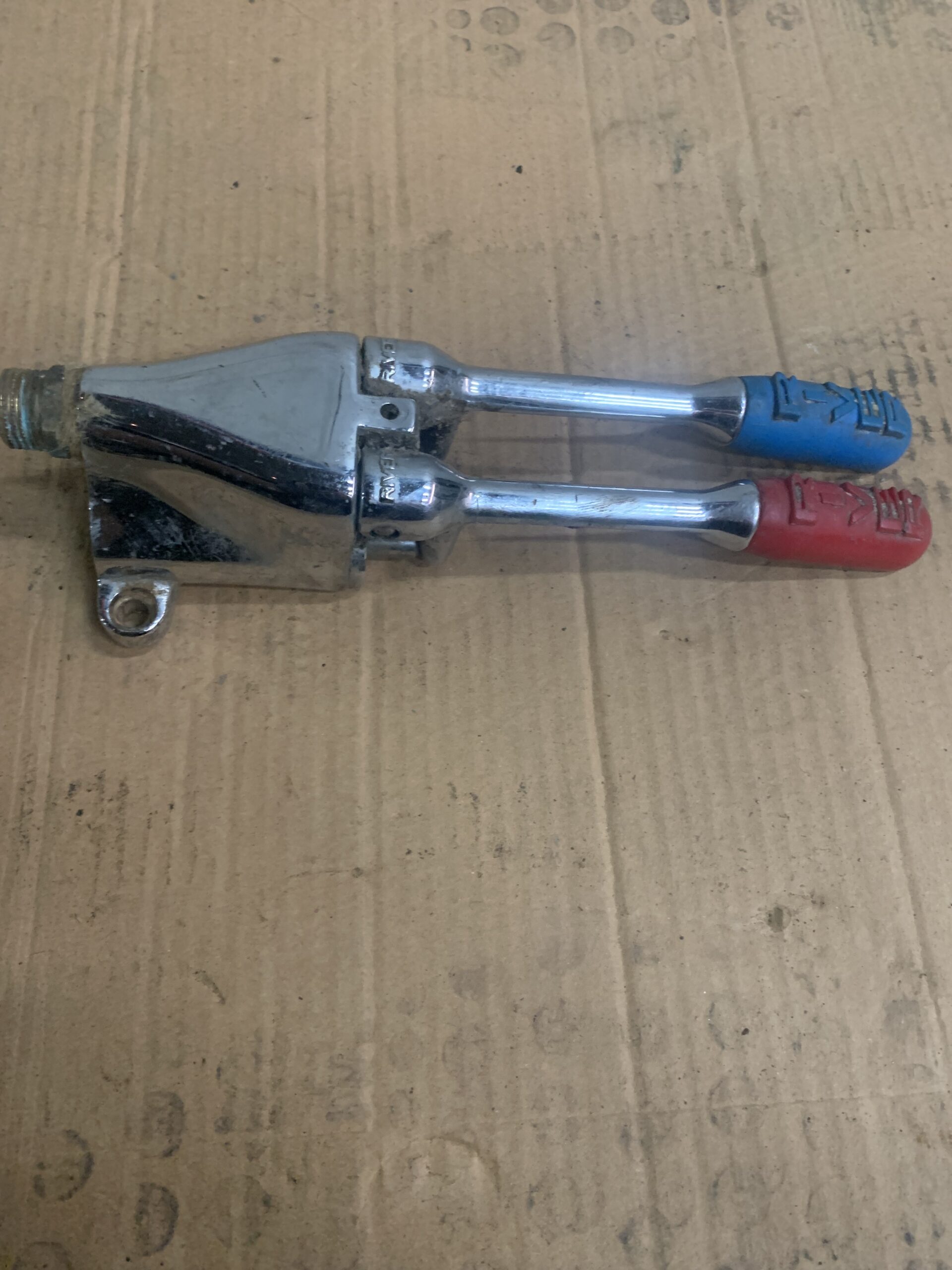 « GRIFO DE PEDAL DOBLE » Grifo de pedal doble para agua fría y caliente, ideal para cocinas industriales o sanitarias al permitir el accionamiento manos libres.