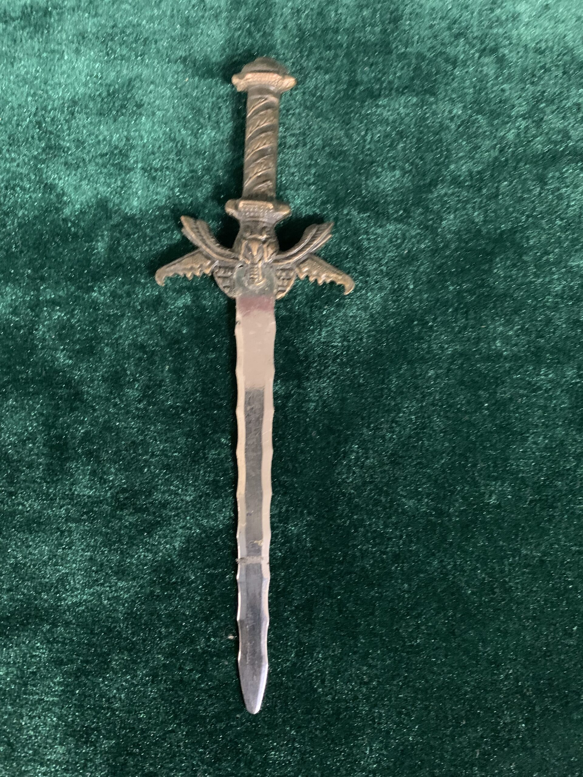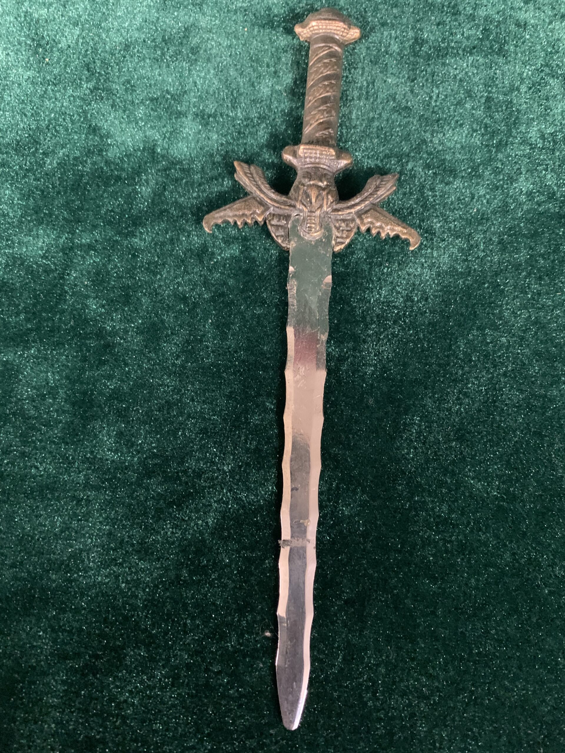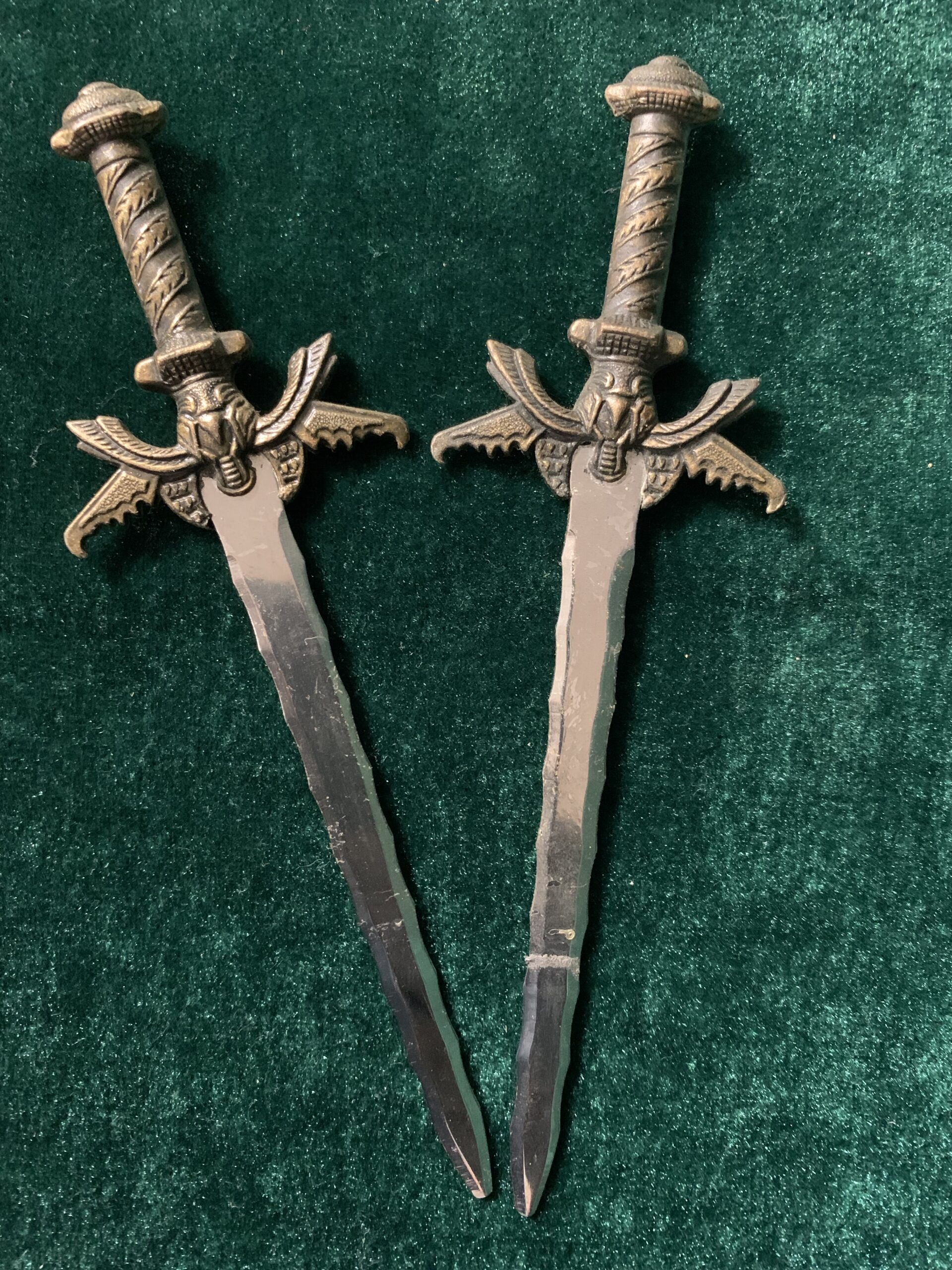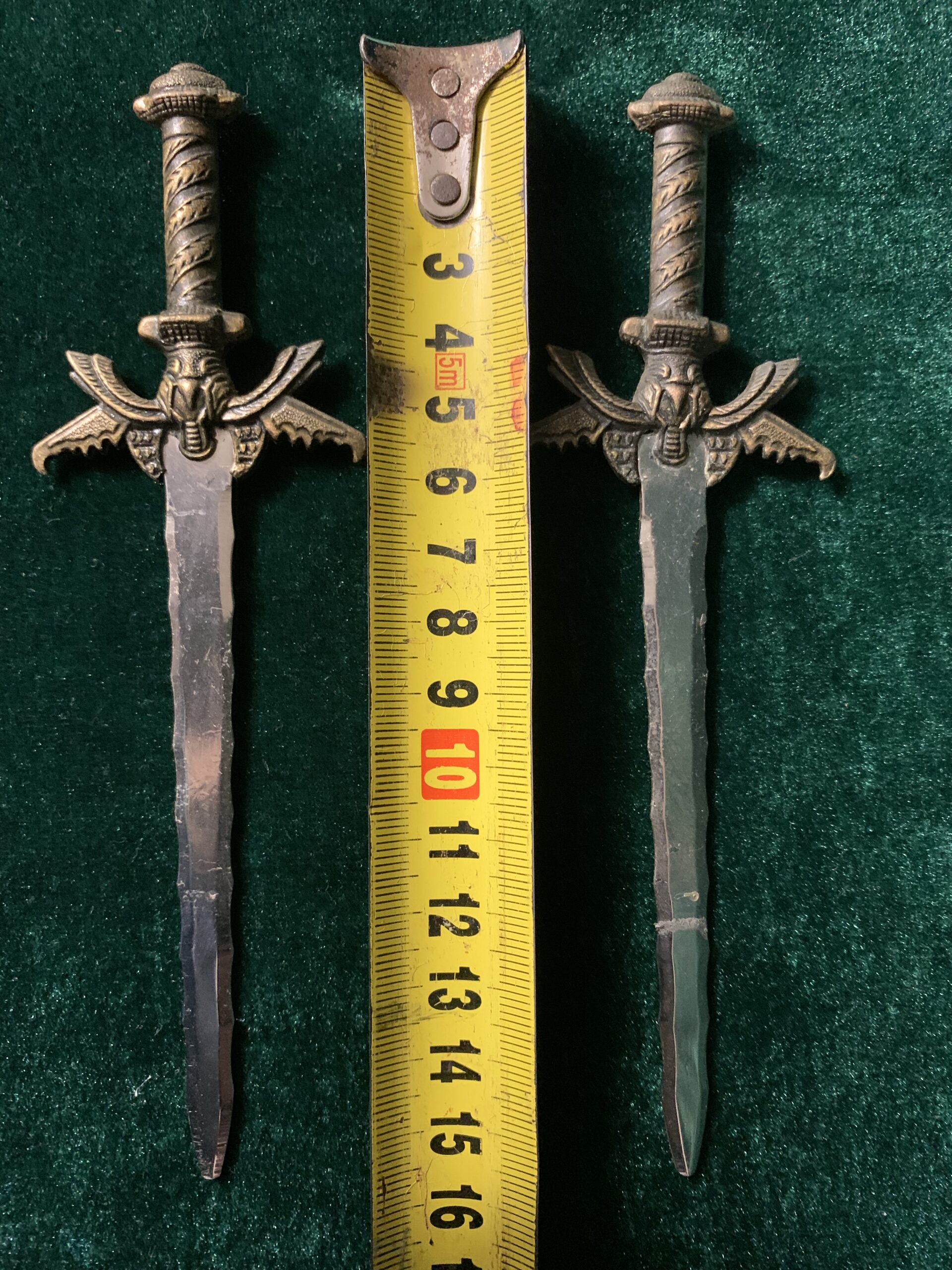 PAREJA ESPADAS, fantasía oscura réplica de espada histórica, en acero inoxidable, fabricada en Toledo con una medida de 16 cm. de largo ideal para abrecartas o coleccionismo.