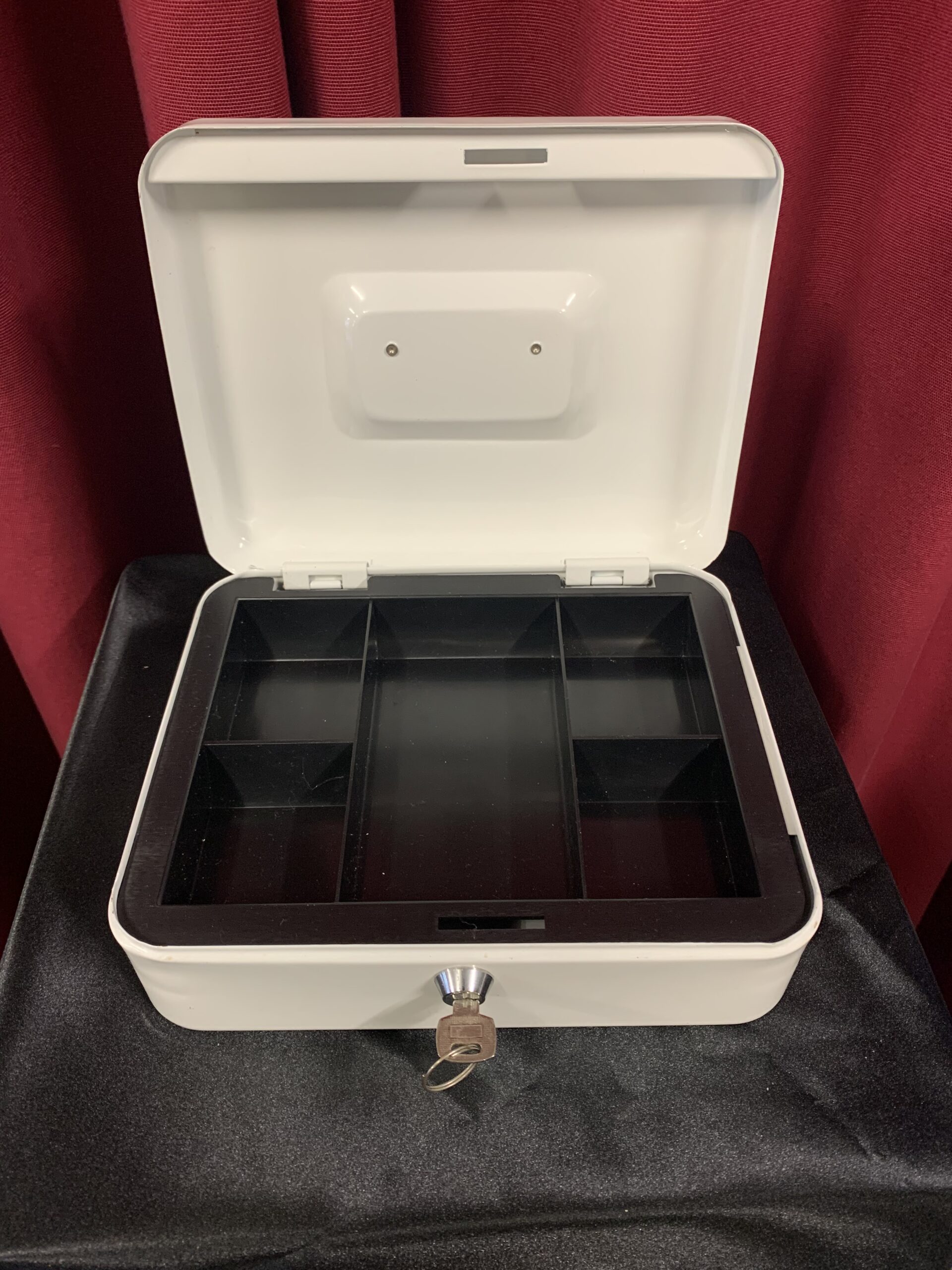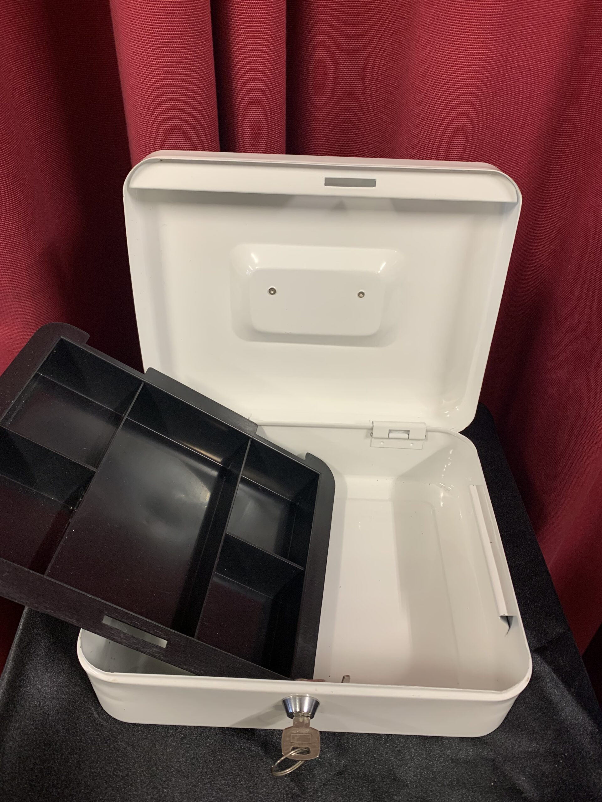 CAJA CAUDALES, fabricado en metal, con separadores para monedas y billetes, cerradura con llave.