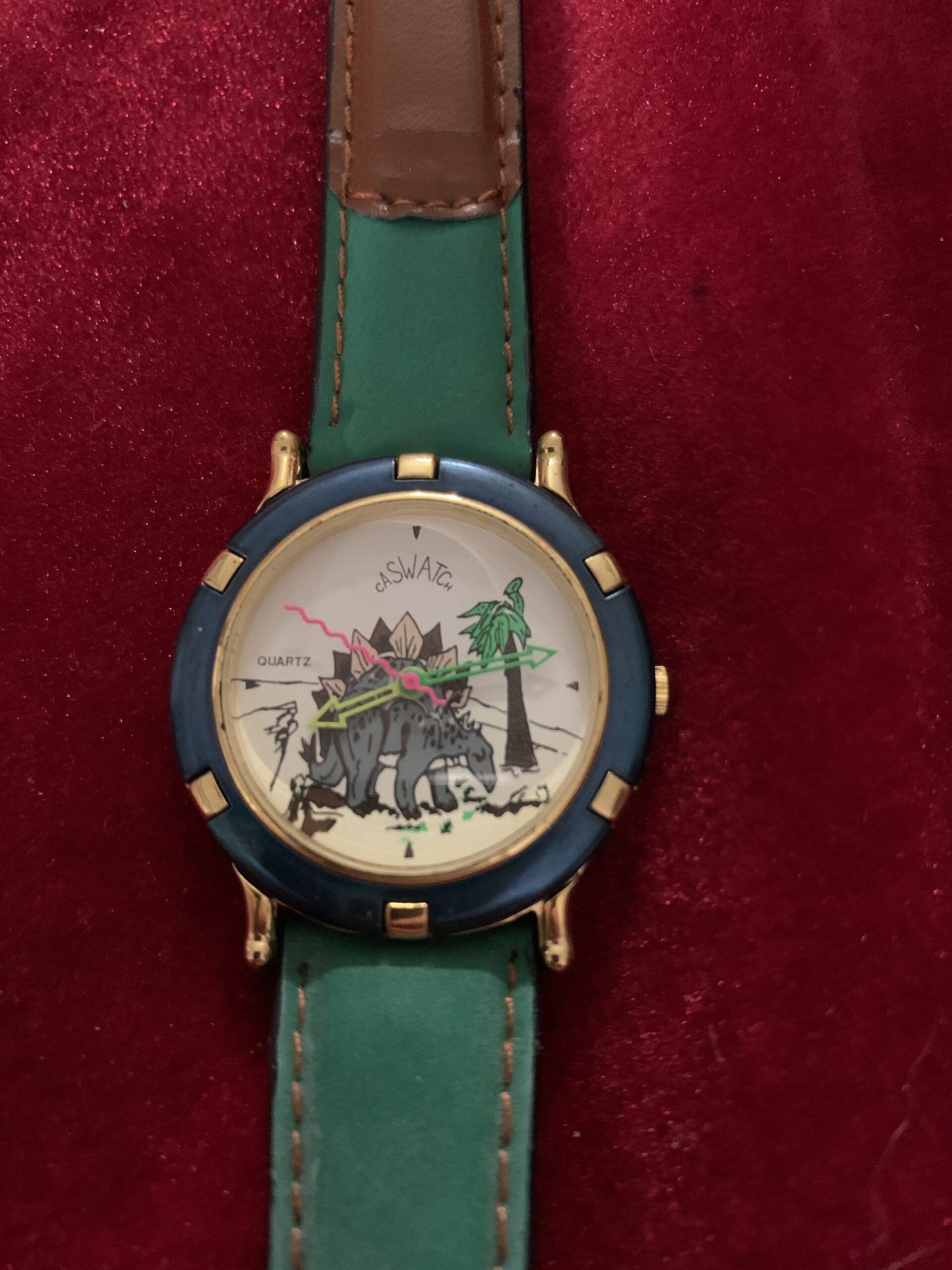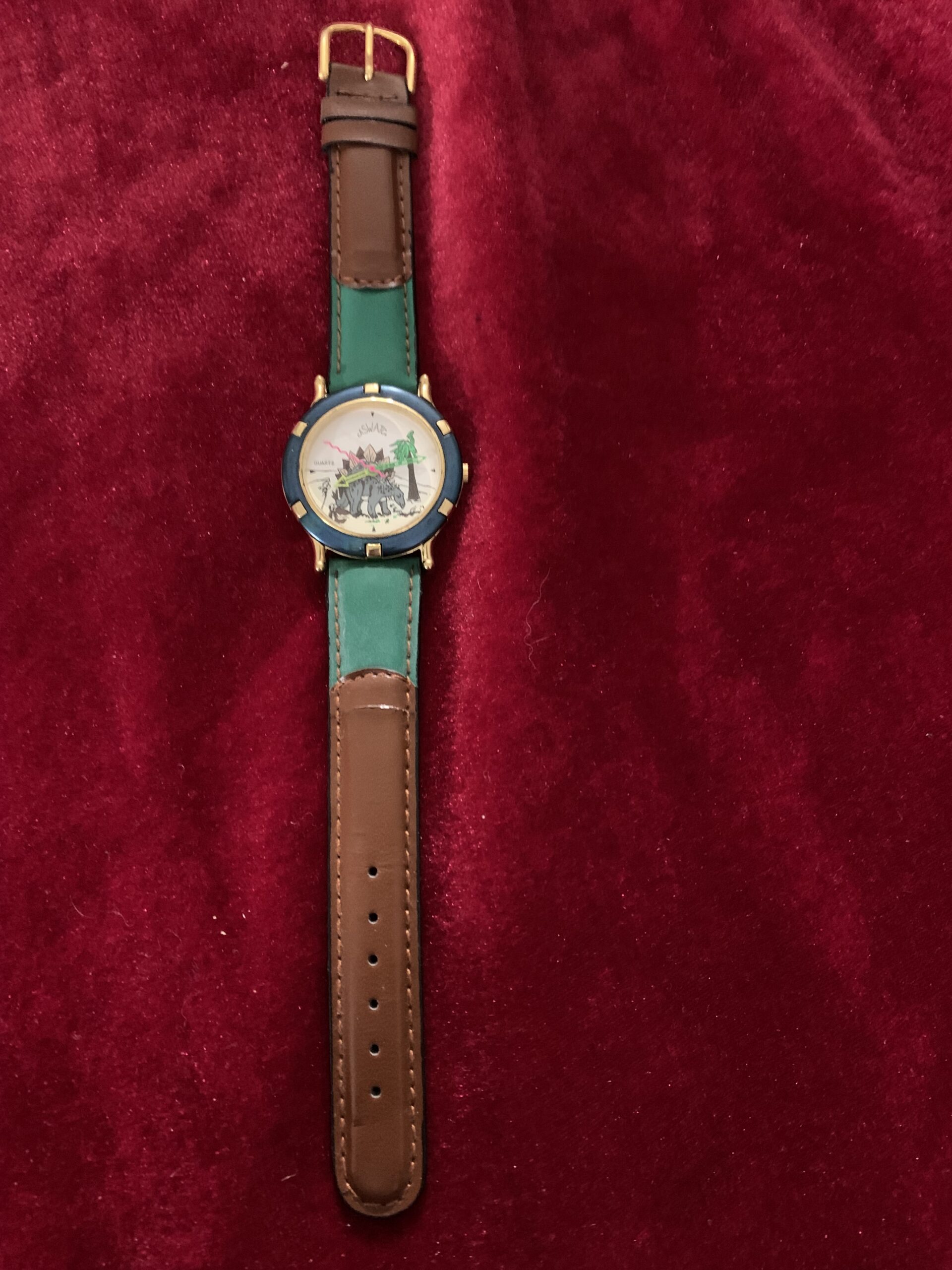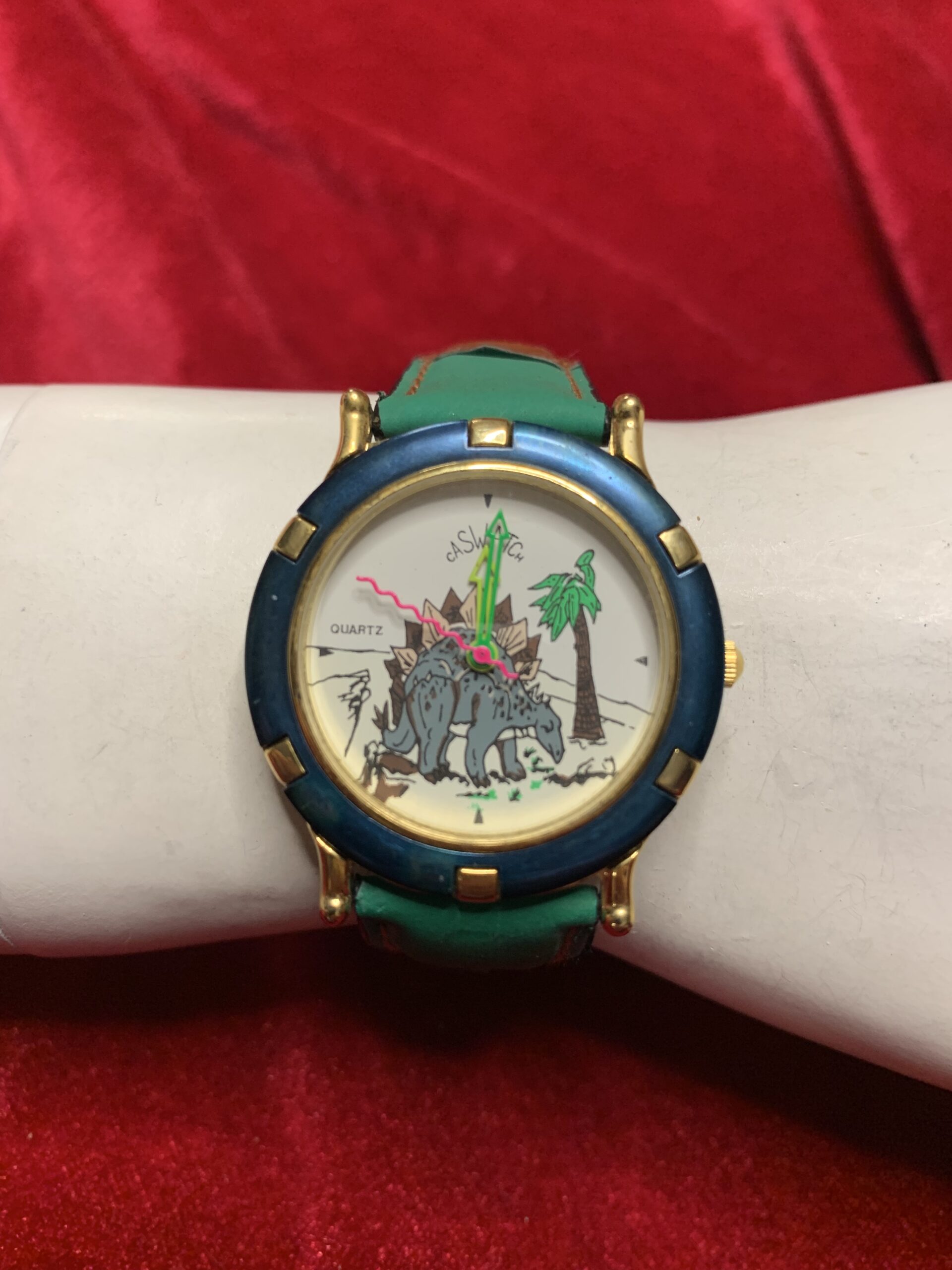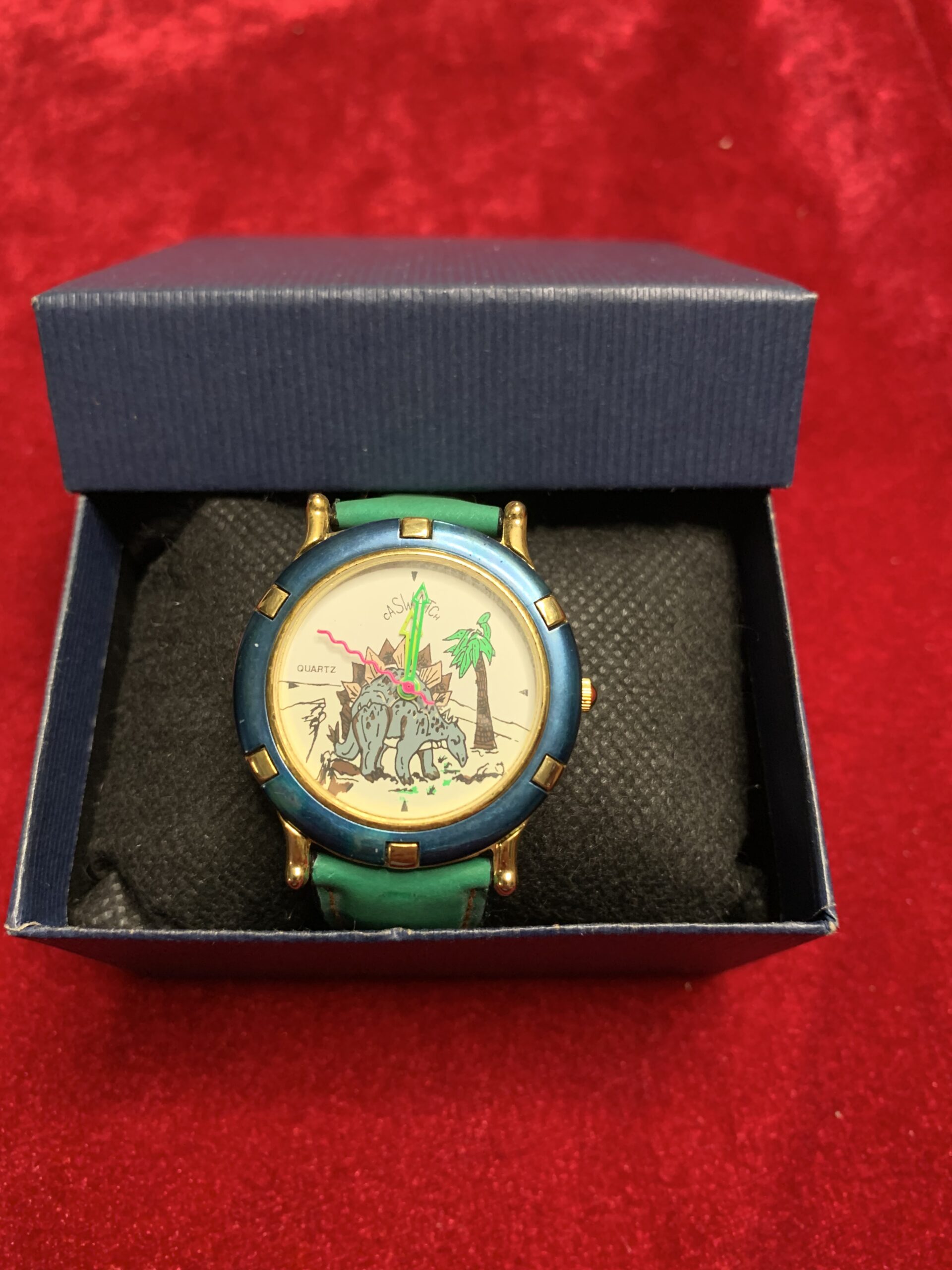BONITO RELOJ VINTAGE INFANTIL, fabricado por la marca CASTWACHT, trasera de acero, caja metálica y pulsera cuero y tela