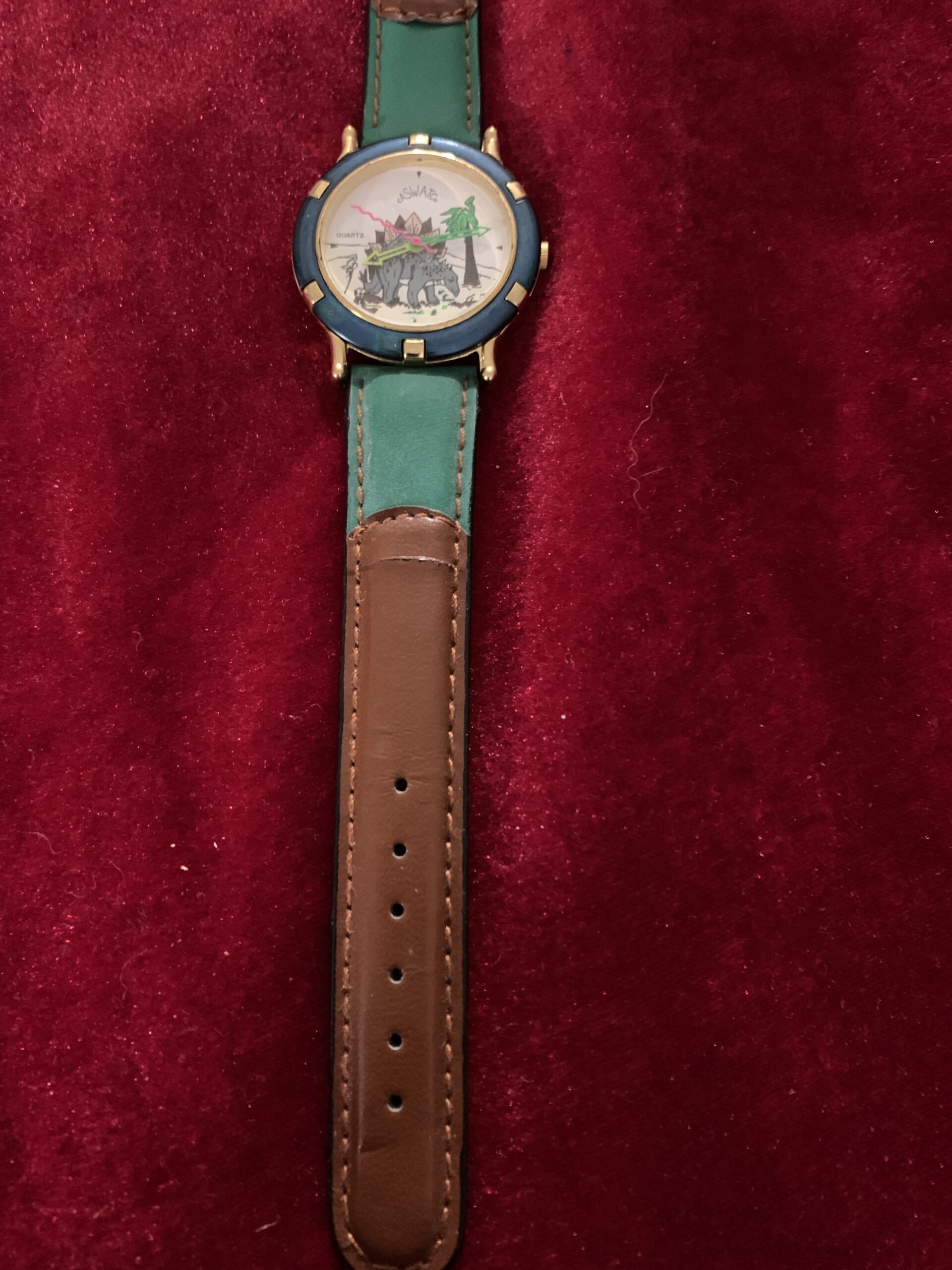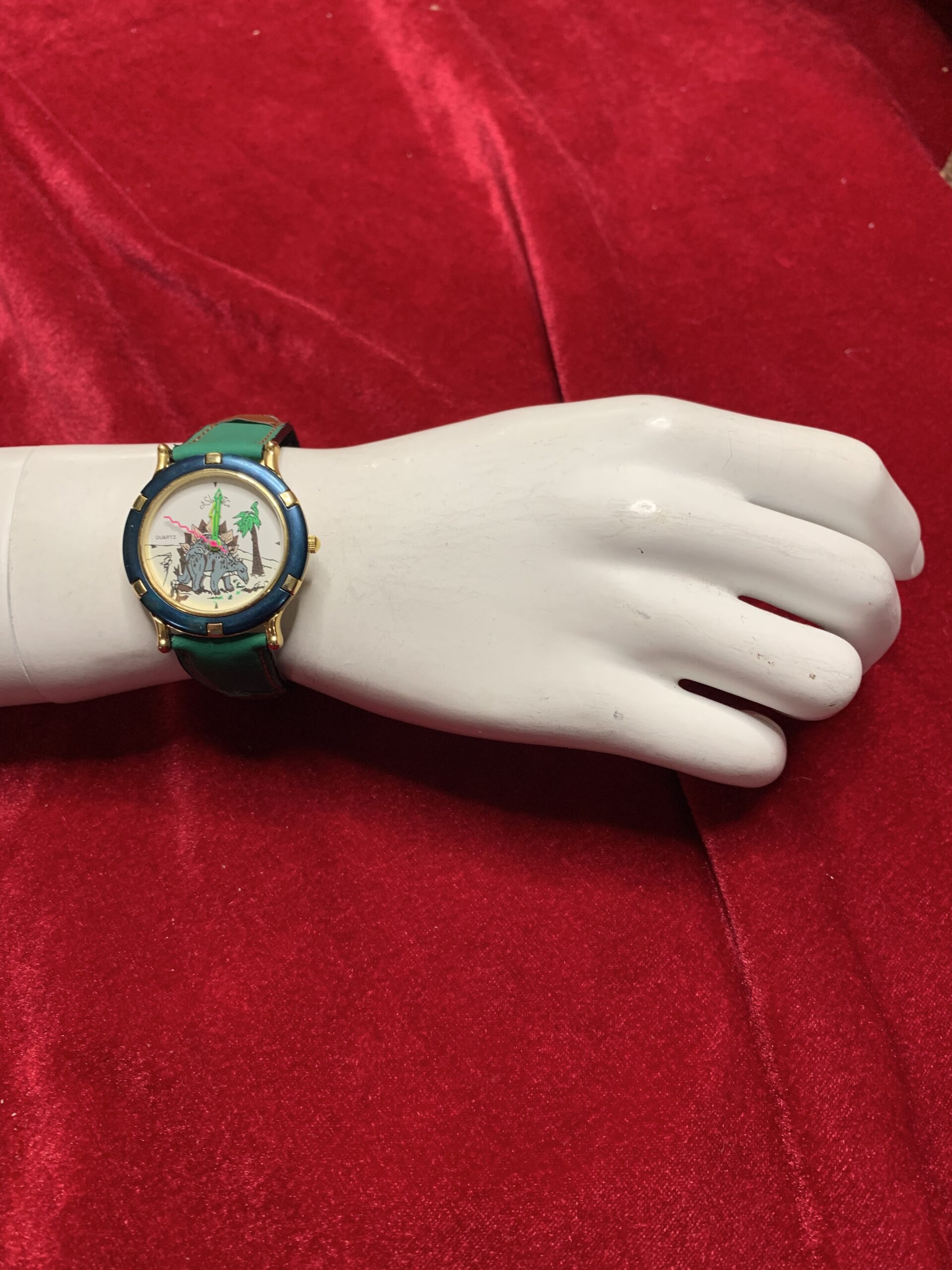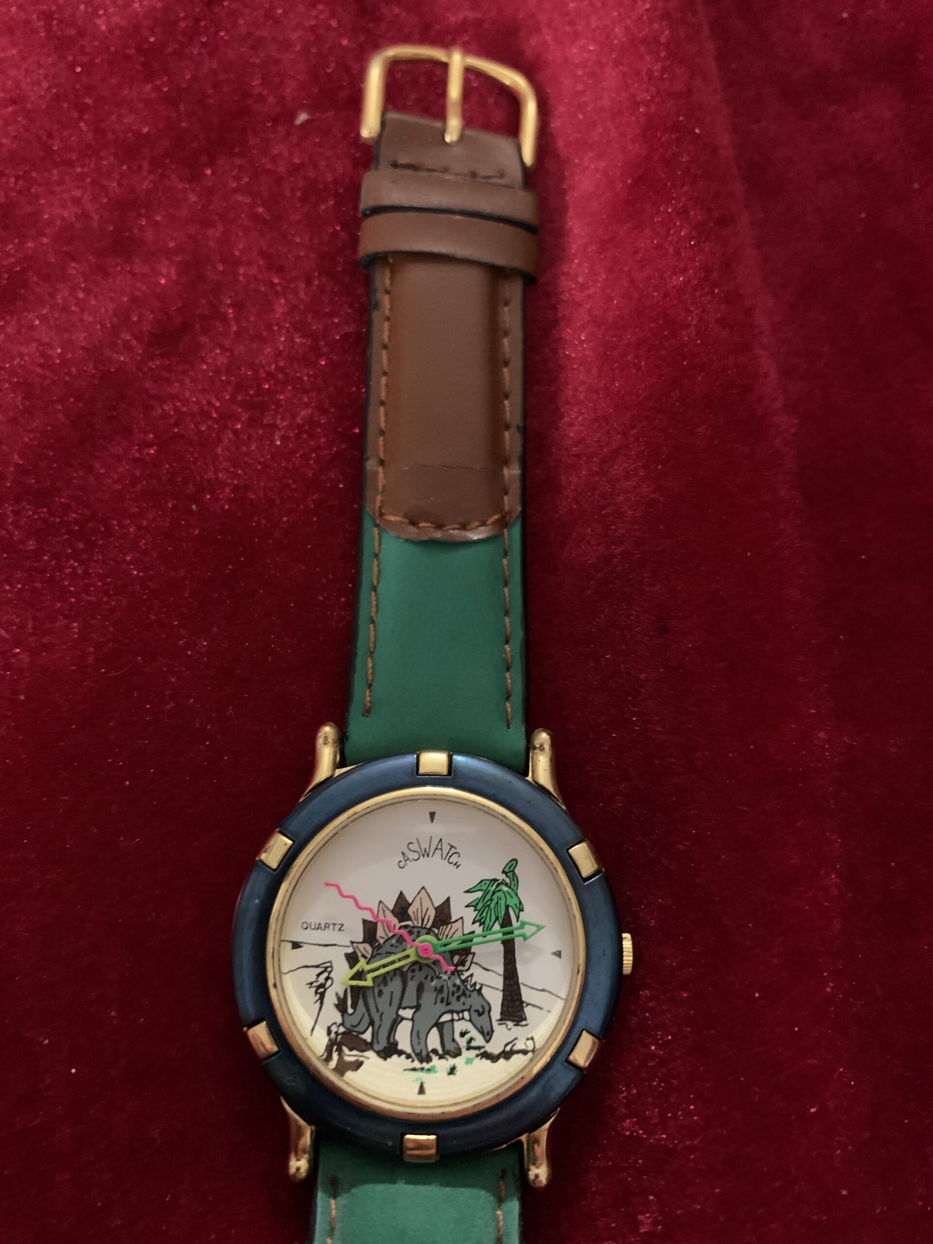 BONITO RELOJ VINTAGE INFANTIL, fabricado por la marca CASTWACHT, trasera de acero, caja metálica y pulsera cuero y tela