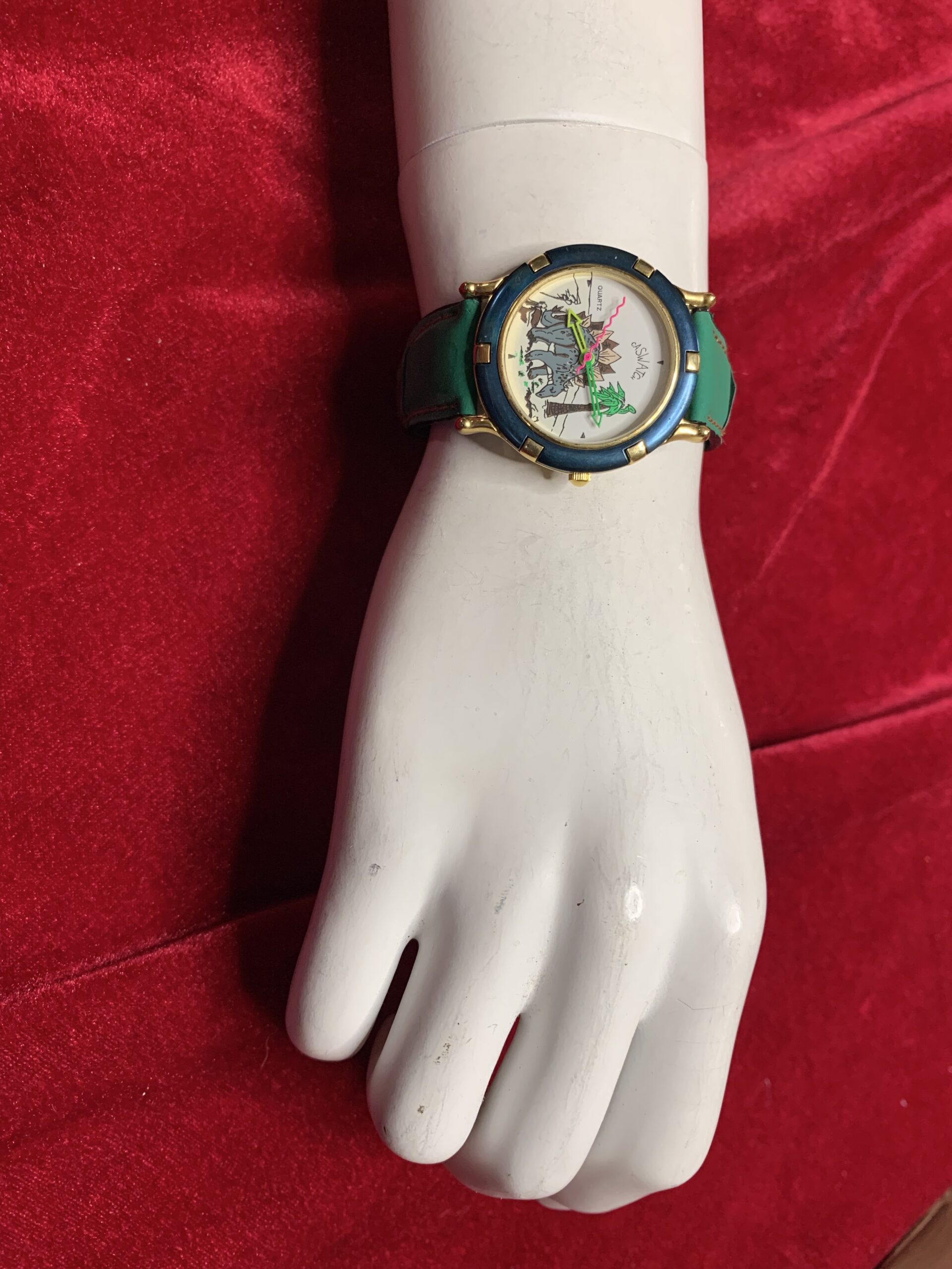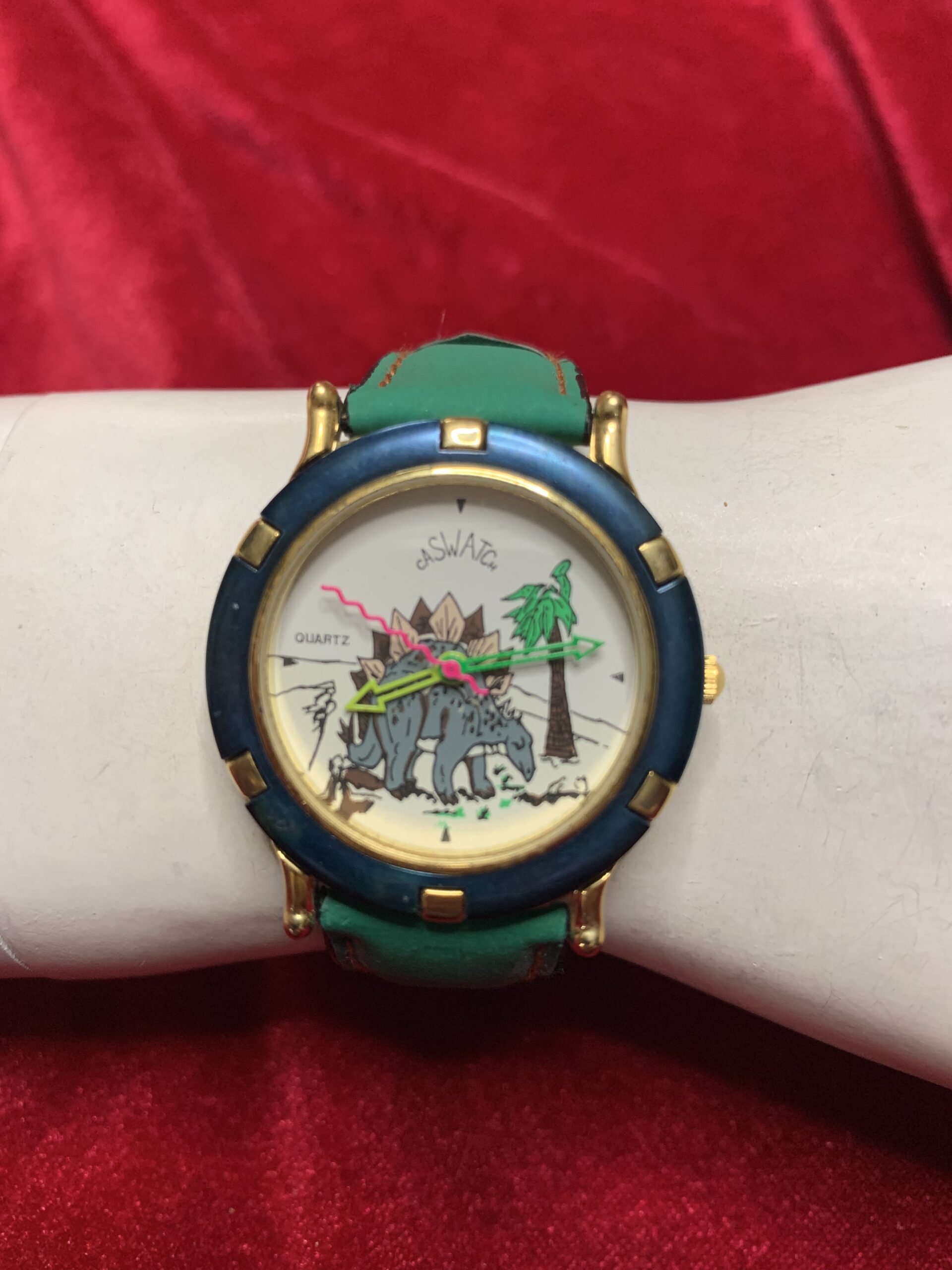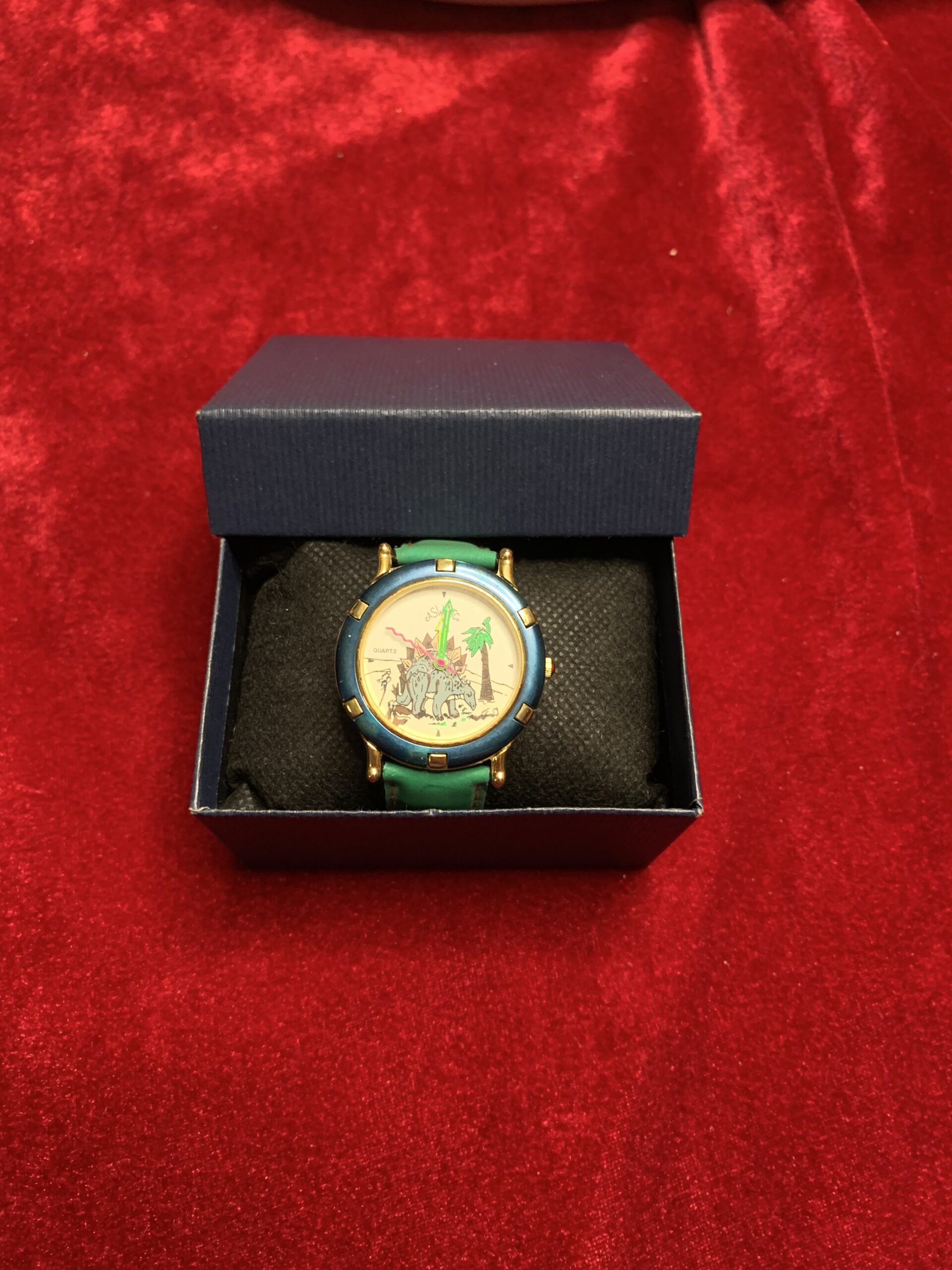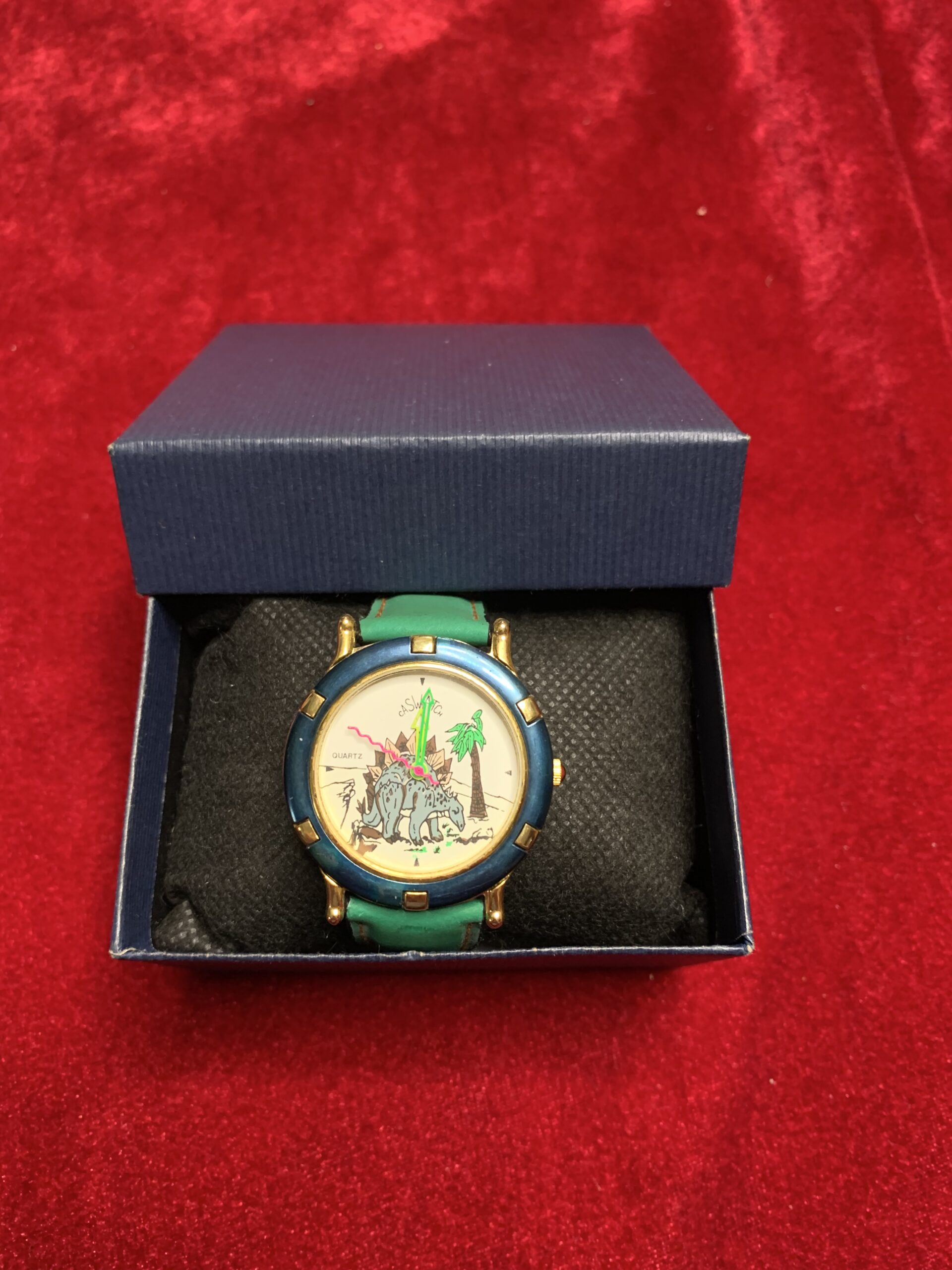 BONITO RELOJ VINTAGE INFANTIL, fabricado por la marca CASTWACHT, trasera de acero, caja metálica y pulsera cuero y tela