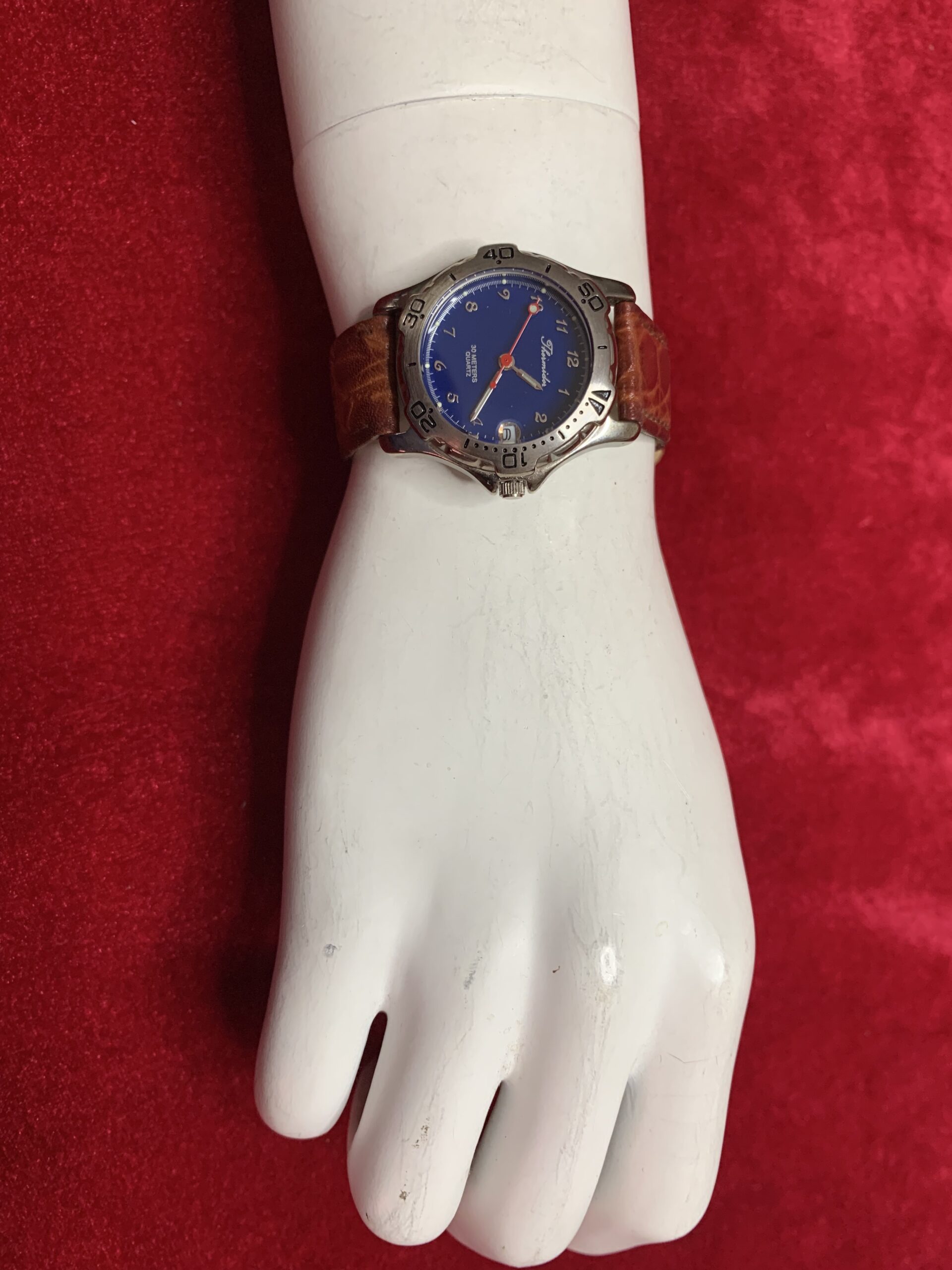 PRECIOSO RELOJ VINTAGE HOMBRE, fabricado por la conocida marca Thermidor, años 90, este modelo analógico con una caja en acero inoxidable y pulsera cuero autentico en marrones.
